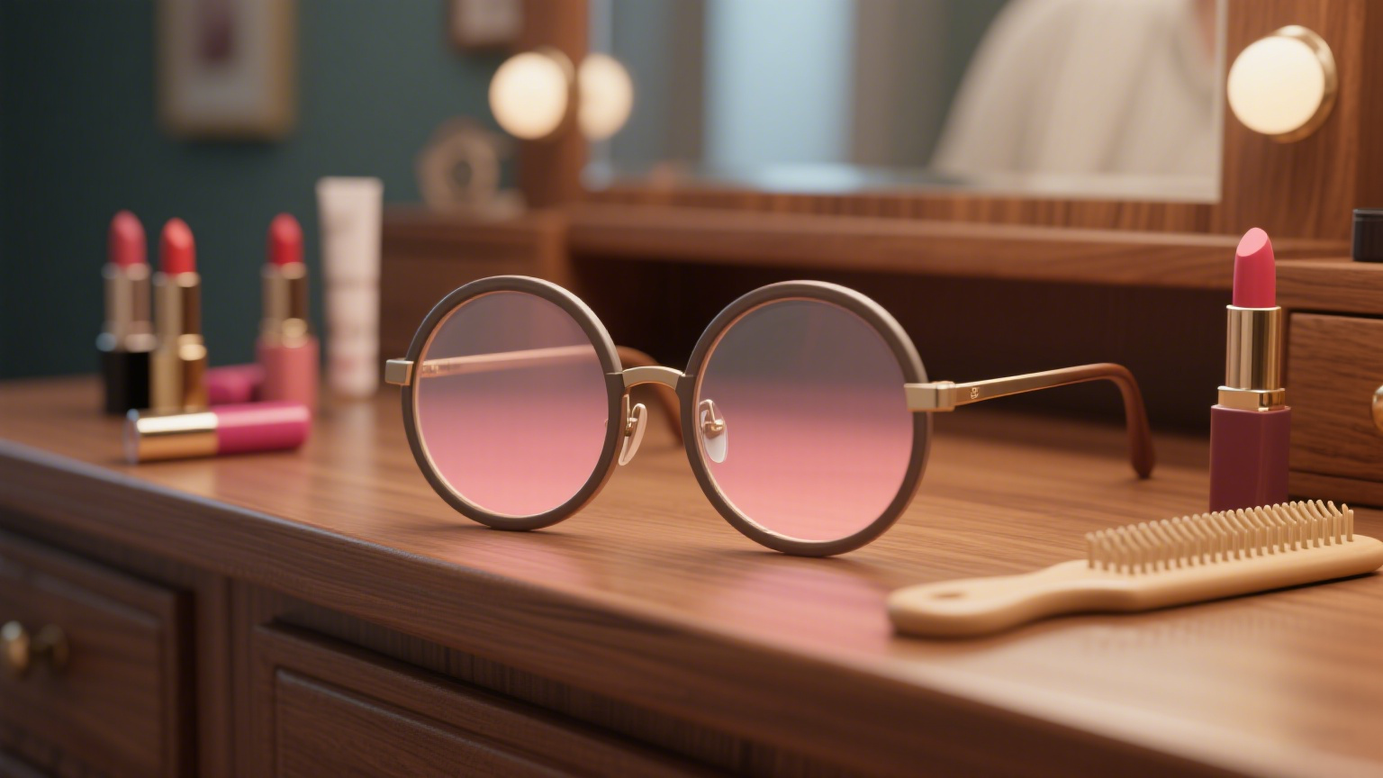 チークメガネの最大の魅力は、ほんのりとしたピンク色のレンズにあります。かけるだけで、レンズが放つやわらかなピンクの光が自然に頬へ反射し、まるでチークを入れたような血色感と可愛らしさを演出してくれます。この革新的なデザインは、アイウェアに新たなファッション性をもたらすだけでなく、忙しい現代女性の「手軽にきれいになりたい」という願いにも応える、まさに“持ち歩ける美顔ツール”。いつでもどこでも、顔色を明るく整え、自信に満ちた笑顔を引き出してくれるアイテムです。