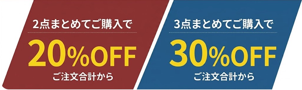2点購入で20%OFF / 3点以上で30%OFF
