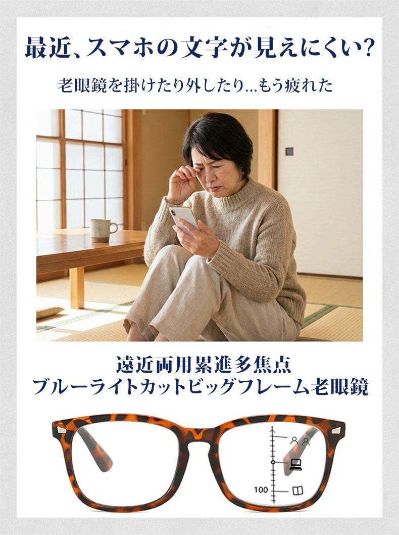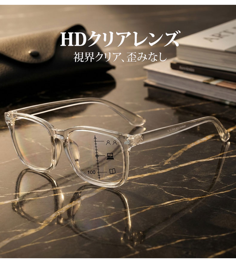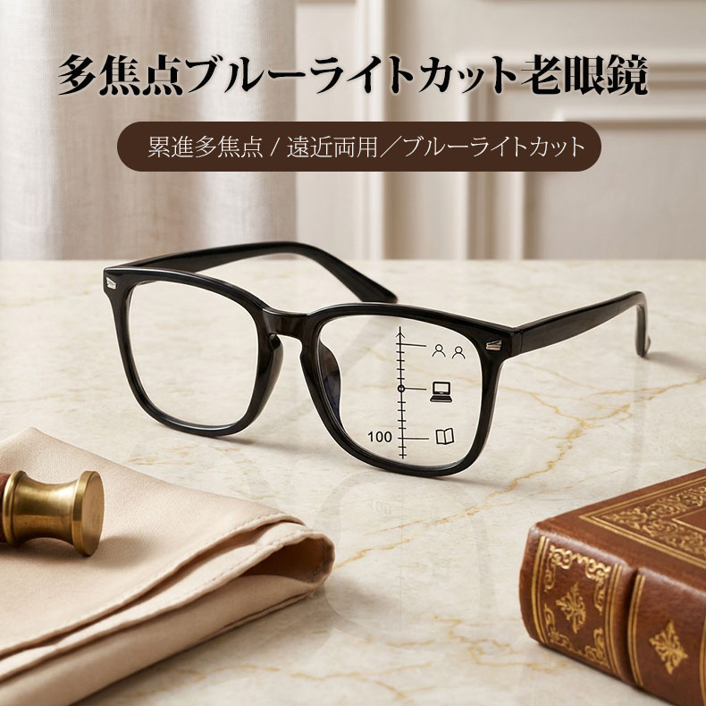 遠近両用累進多焦点ブルーライトカットビッグフレーム老眼鏡 | Wellington Progressive | Eterlens