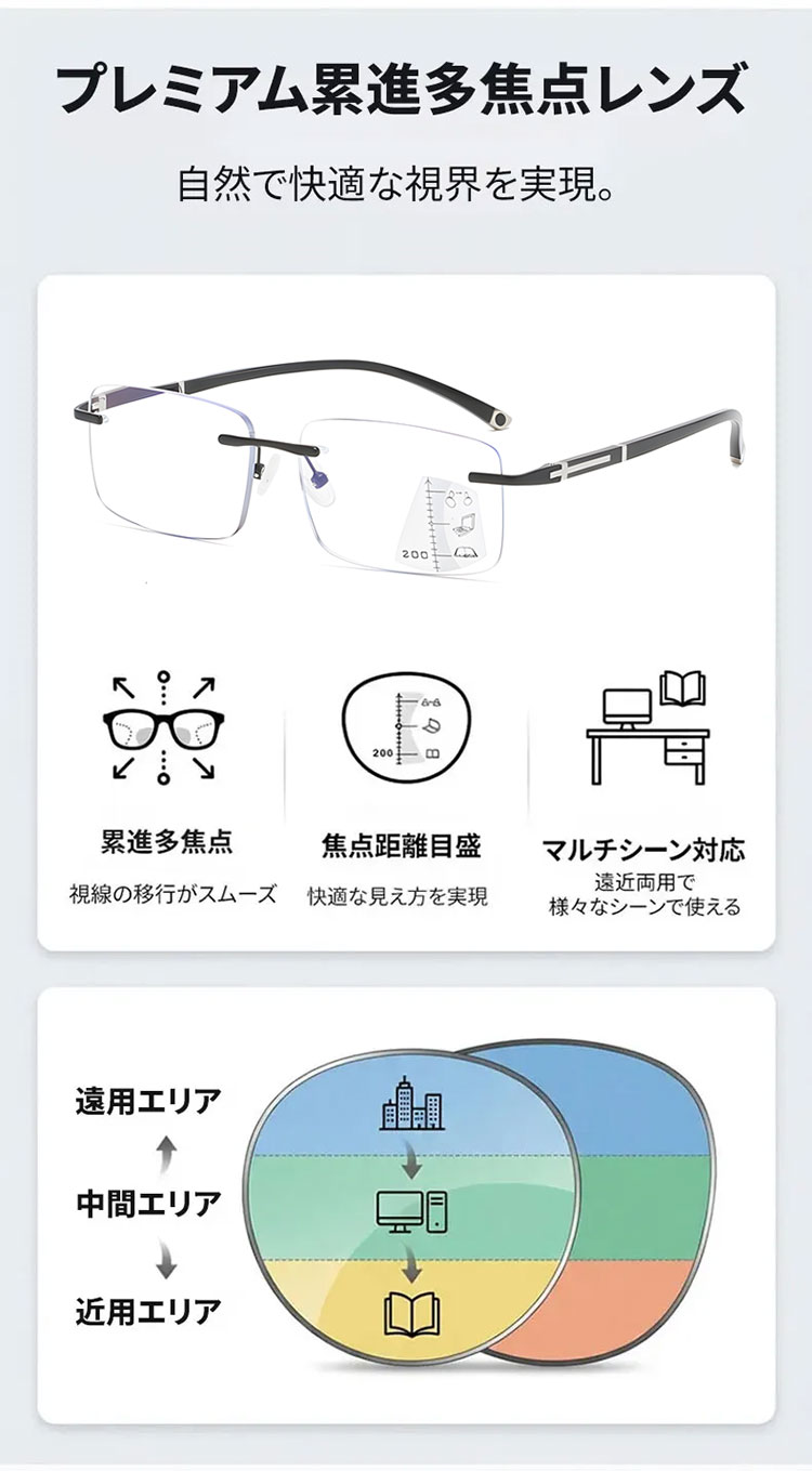 【究極の超軽量設計・1本で3役】Eterlens ゼロ・フレックス 遠近両用 調光メガネ | 付けていることを忘れる超軽量設計 | ツーポイント | ブルーライトカット 老眼鏡 おしゃれ