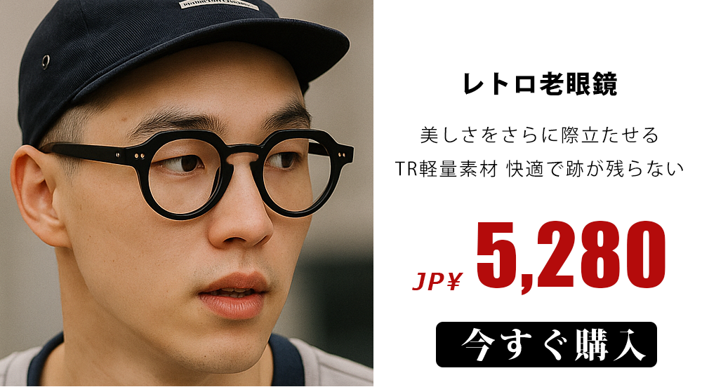 【鯖江風・14.7g超軽量】Eterlens 老眼鏡 おしゃれ 丸メガネ Retro-Classic 14 | 純チタン製 遠近両用 調光対応 | 度付き対応可能・匠の仕上がり