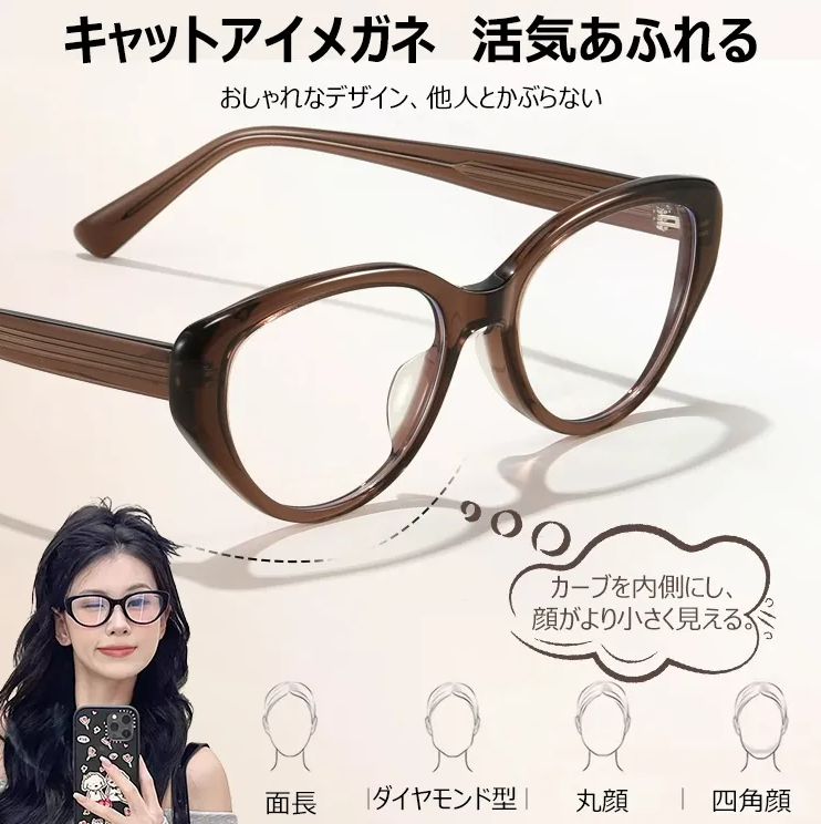 従来のメガネにあるような堅苦しさとはもうさよなら。Eterlens の女性向けカスタムシリーズは、「視力補正」と「顔まわりの美しさ」を完璧に融合しました。仕事で気合いを入れたい時の「勝負メガネ」が欲しい方も、旅行先でノーメイクでもきれいに見せたい方も、ここで答えが見つかります。小顔効果のあるキャットアイメガネから、血色感を添えるチークレンズメガネまで、すべては「掛けると、さらに美しくなる」ためのデザインです。