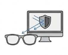 「知的な印象と小顔効果の黄金比」。逆台形型の「ウェリントン型」は、誰にでも似合う王道デザイン。天地幅(レンズの高さ)がしっかりあるため、面長を自然にカバーし、小顔見え効果も抜群!ブルーライトカット機能付きで、PC作業中の目元を知的で落ち着いた印象へ導きます。