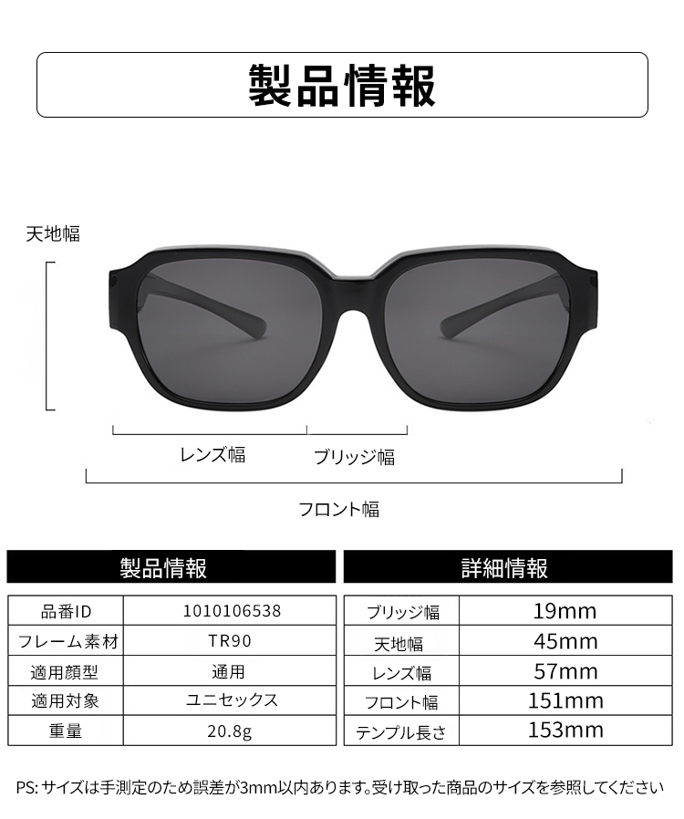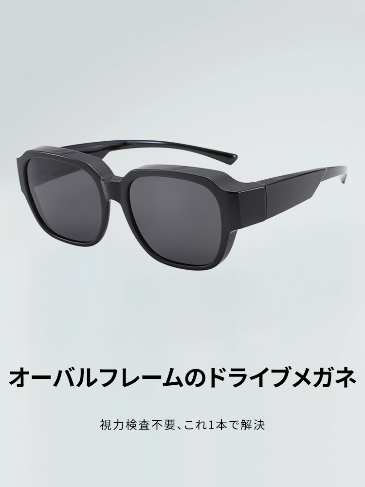 Eterlens|スクエアフレームのドライブメガネ|UVカット偏光レンズ|メガネの上からかけられるオーバーグラス