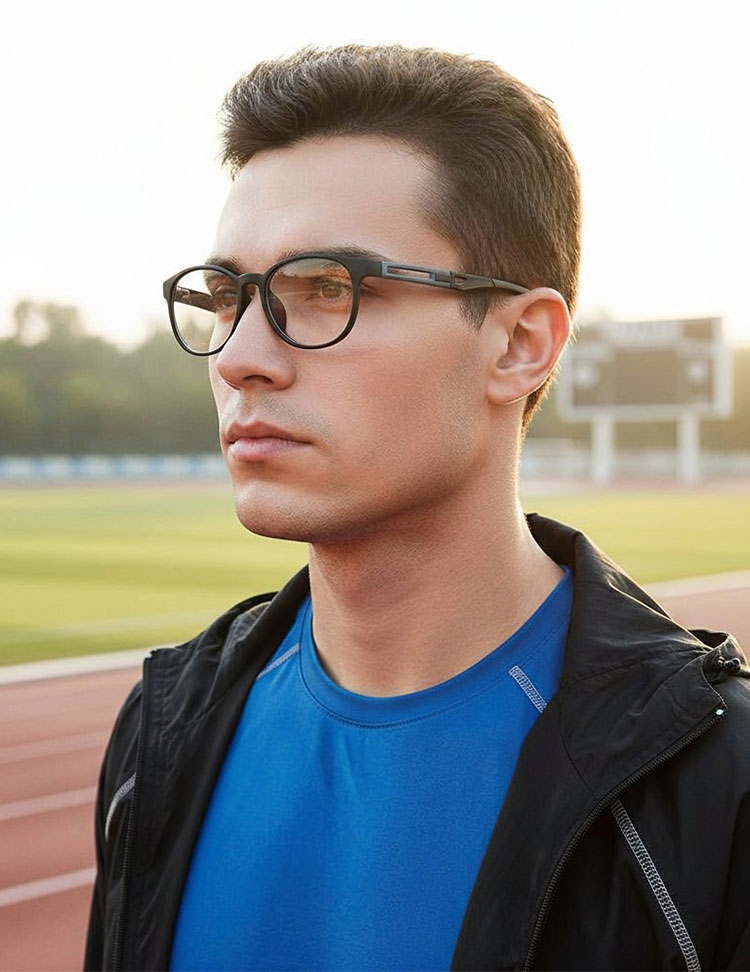 躍動感と軽快さをテーマに設計されたスポーツフレーム。立体的なブリッジと通気性を考慮したテンプルが、動きの中でも安定した掛け心地を実現。日常からアクティブシーンまで自在に対応する、スタイリッシュなスポーツデザインです。