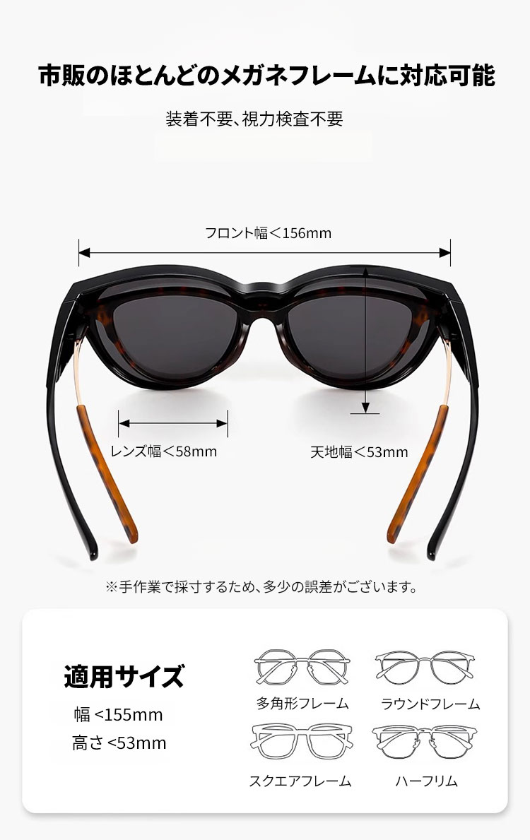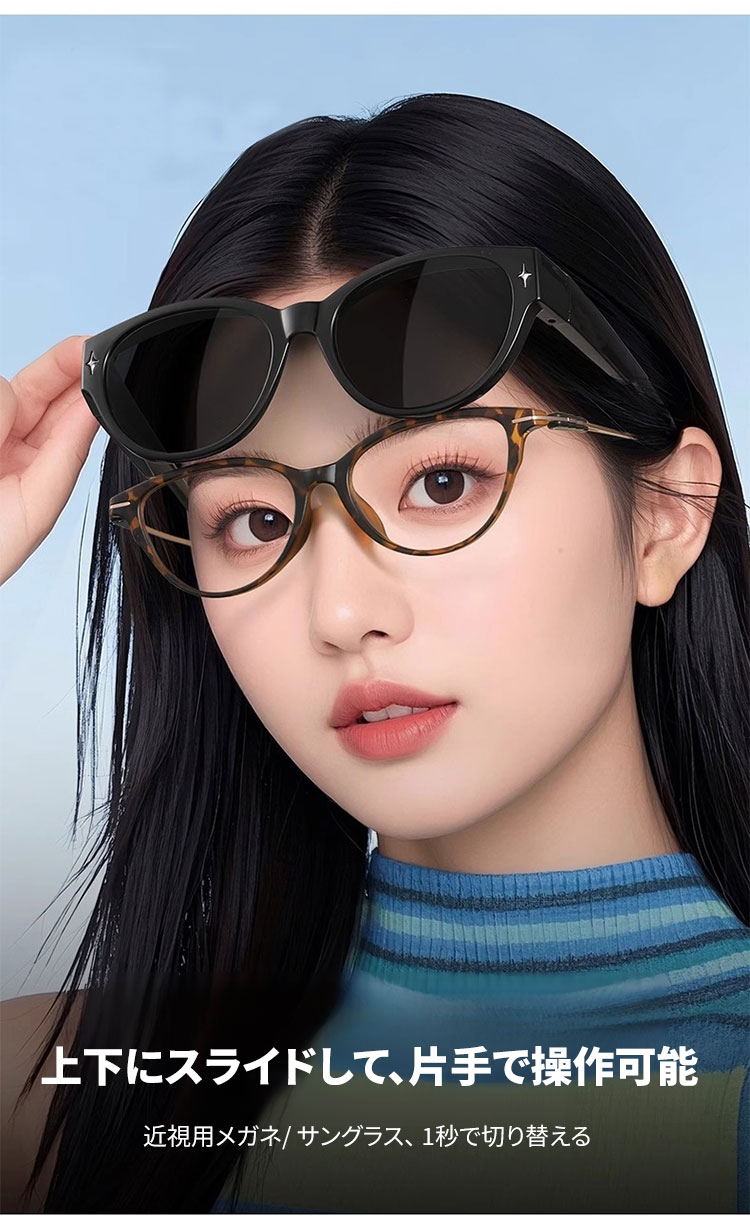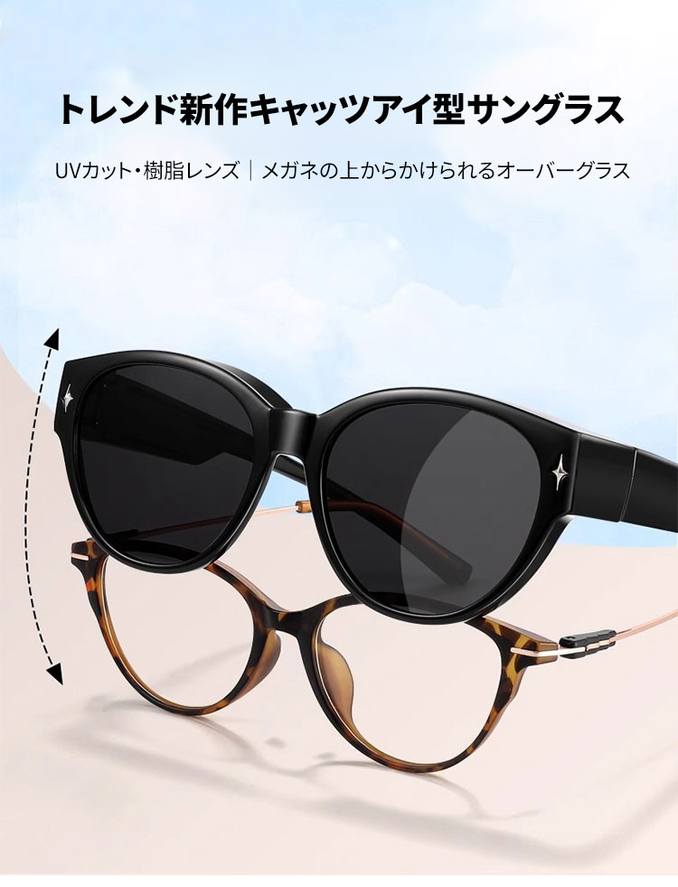 Eterlens|トレンド新作キャッツアイ型サングラス|UVカット・樹脂レンズ|メガネの上からかけられるオーバーグラス