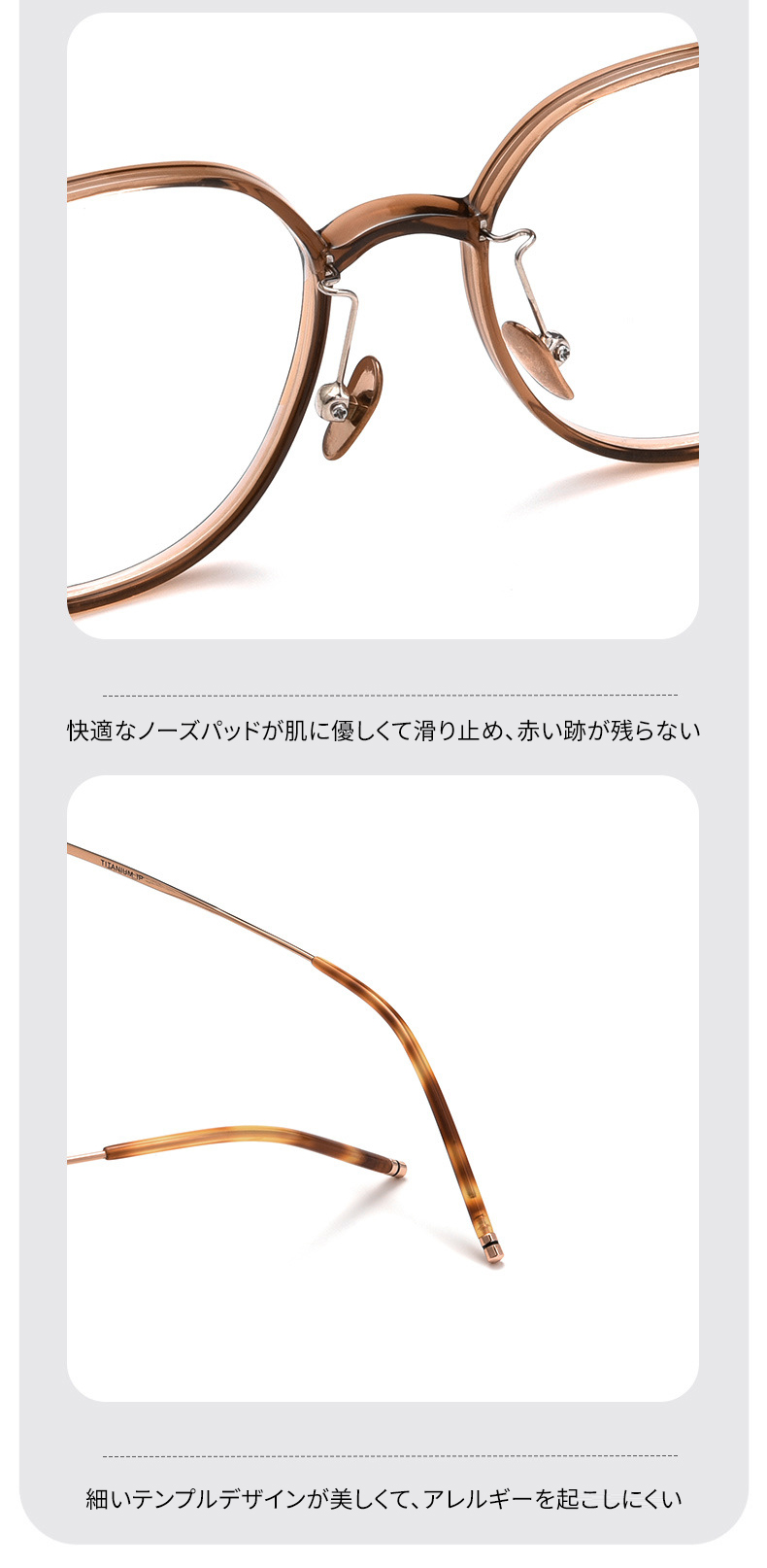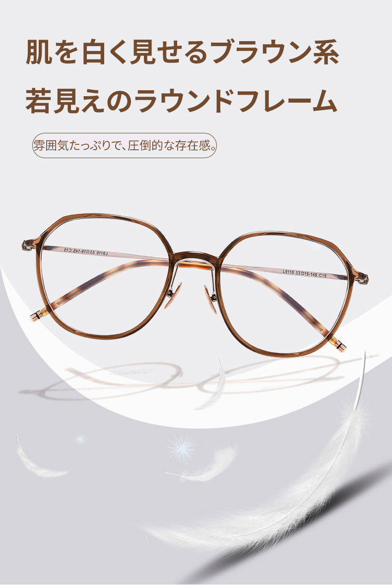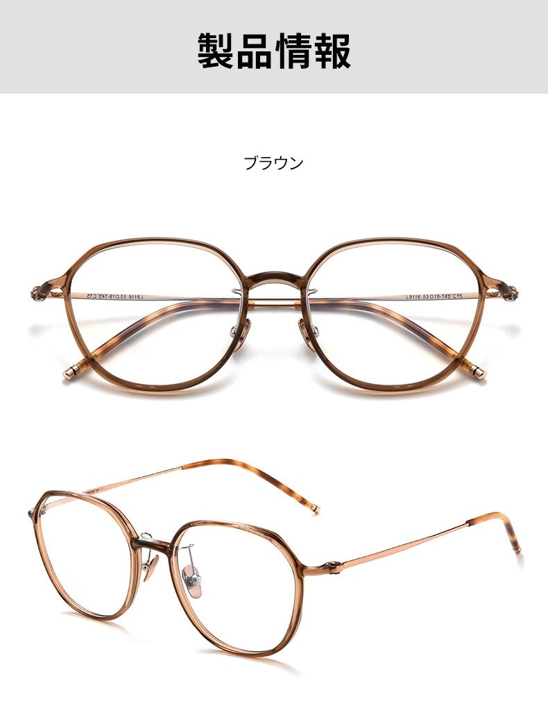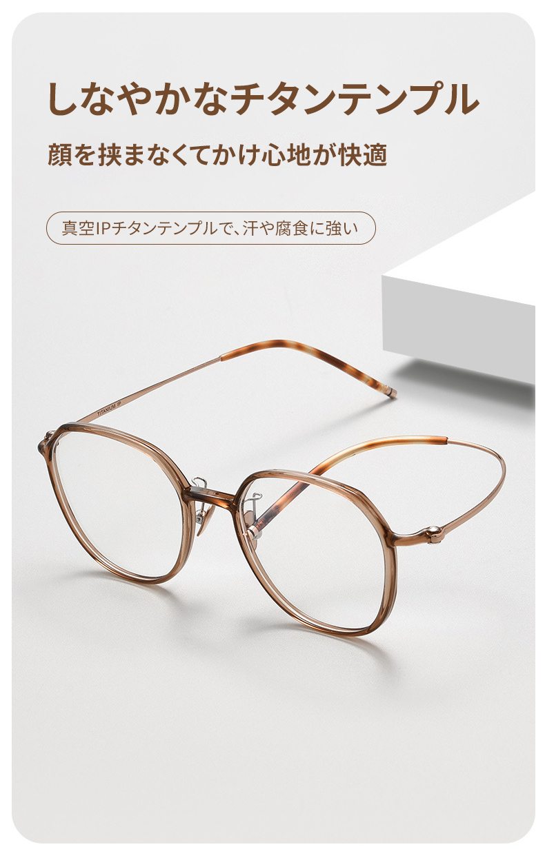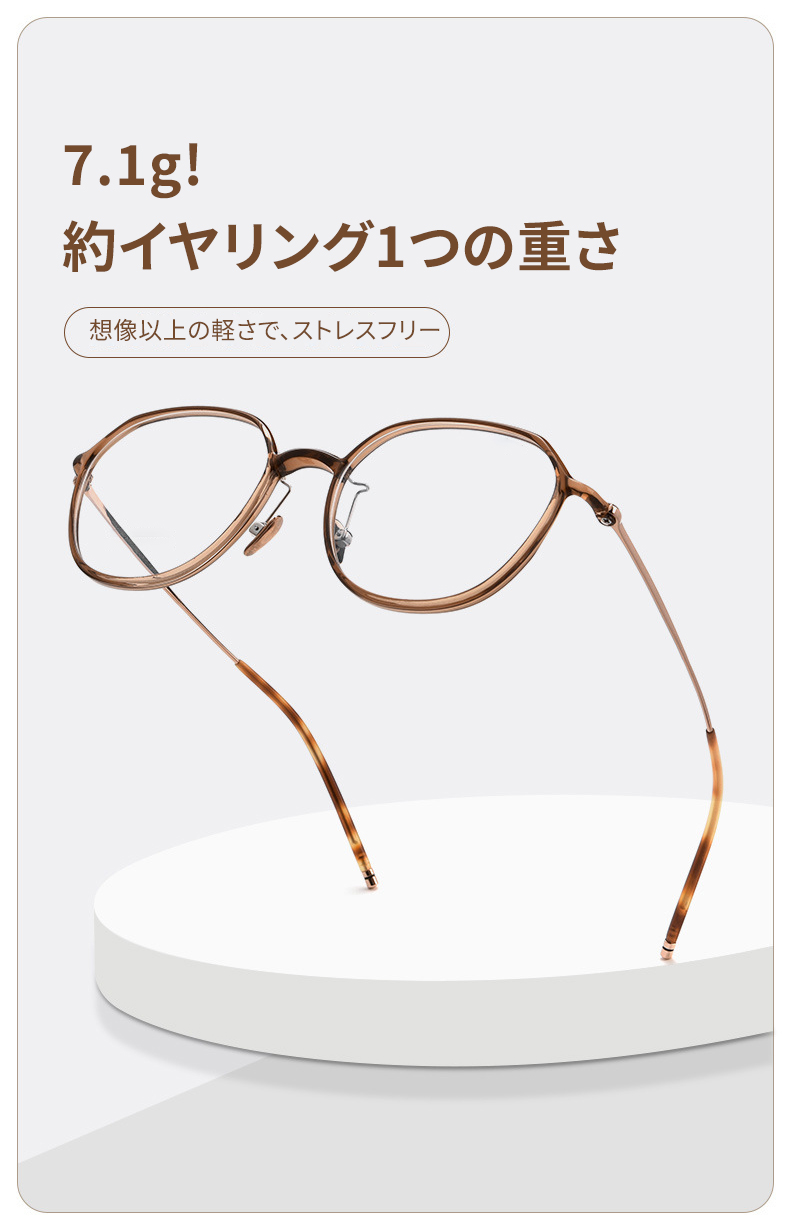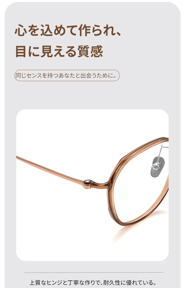【肌に馴染む多角形シェイプ】Eterlens 7.1g メガネ 度付き対応 おしゃれ TR素材 | 透け感のあるブラウン・変形ボストン型 | 韓国風・軽量・小顔効果