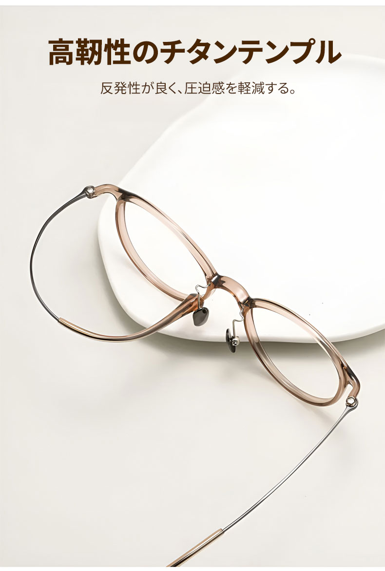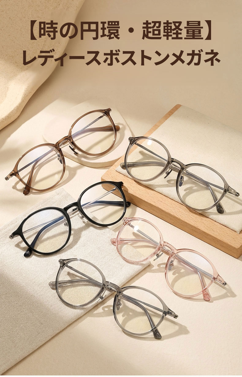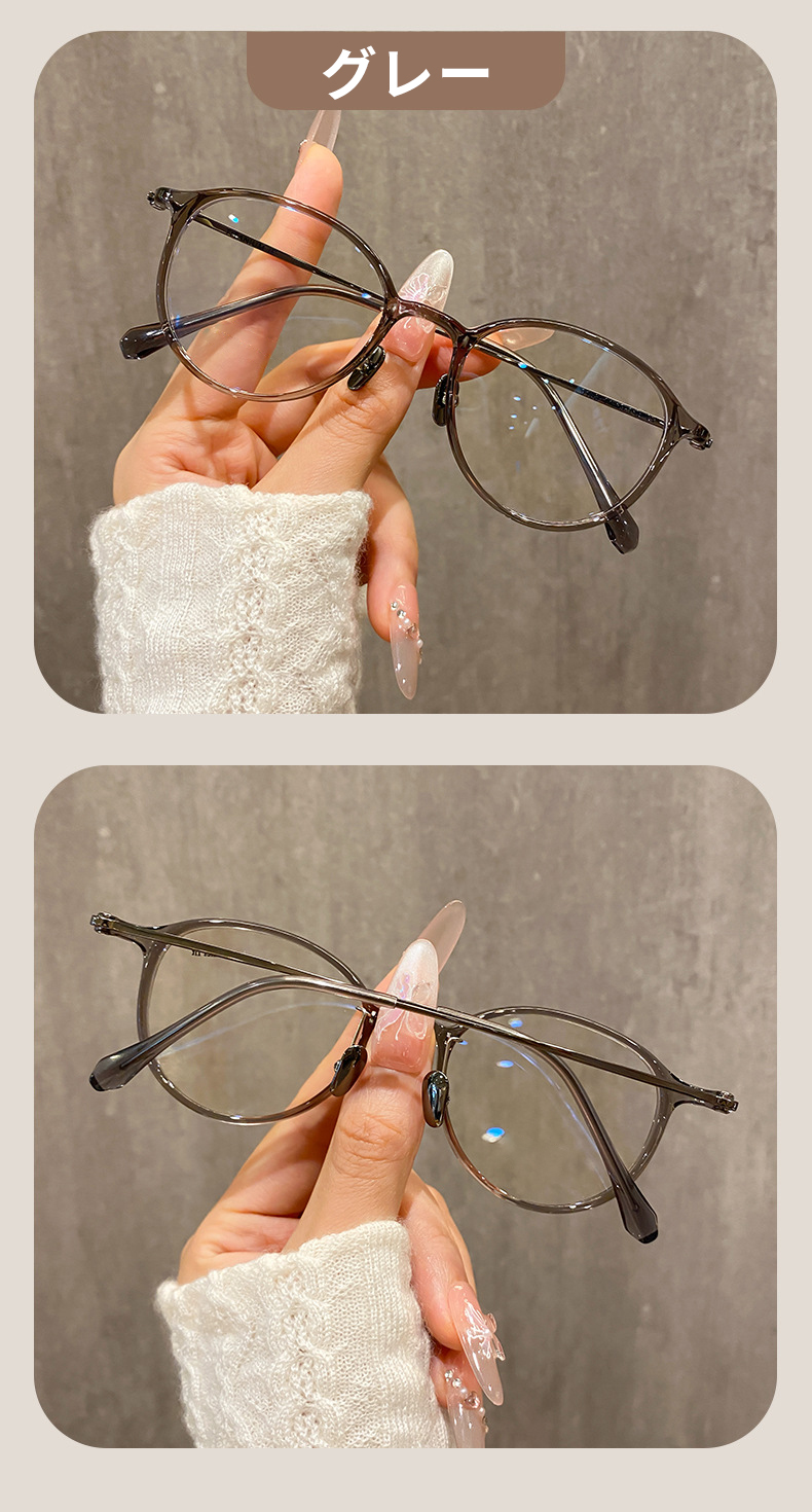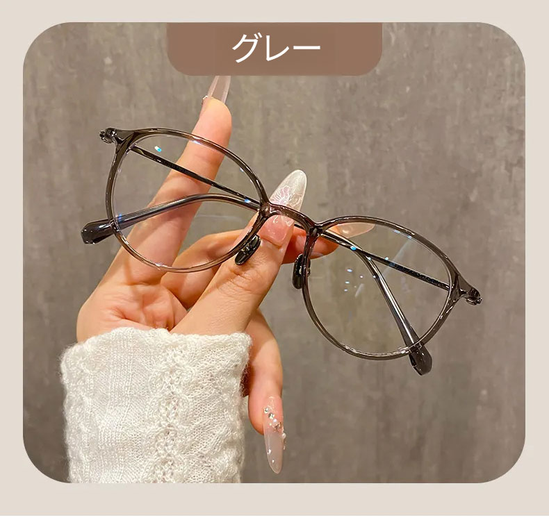【時の円環・超軽量】Eterlens 7g メガネ 度付き対応 おしゃれ 丸メガネ | 透明感のあるグレー・ボストン | 金属アレルギー対応・ユニセックス