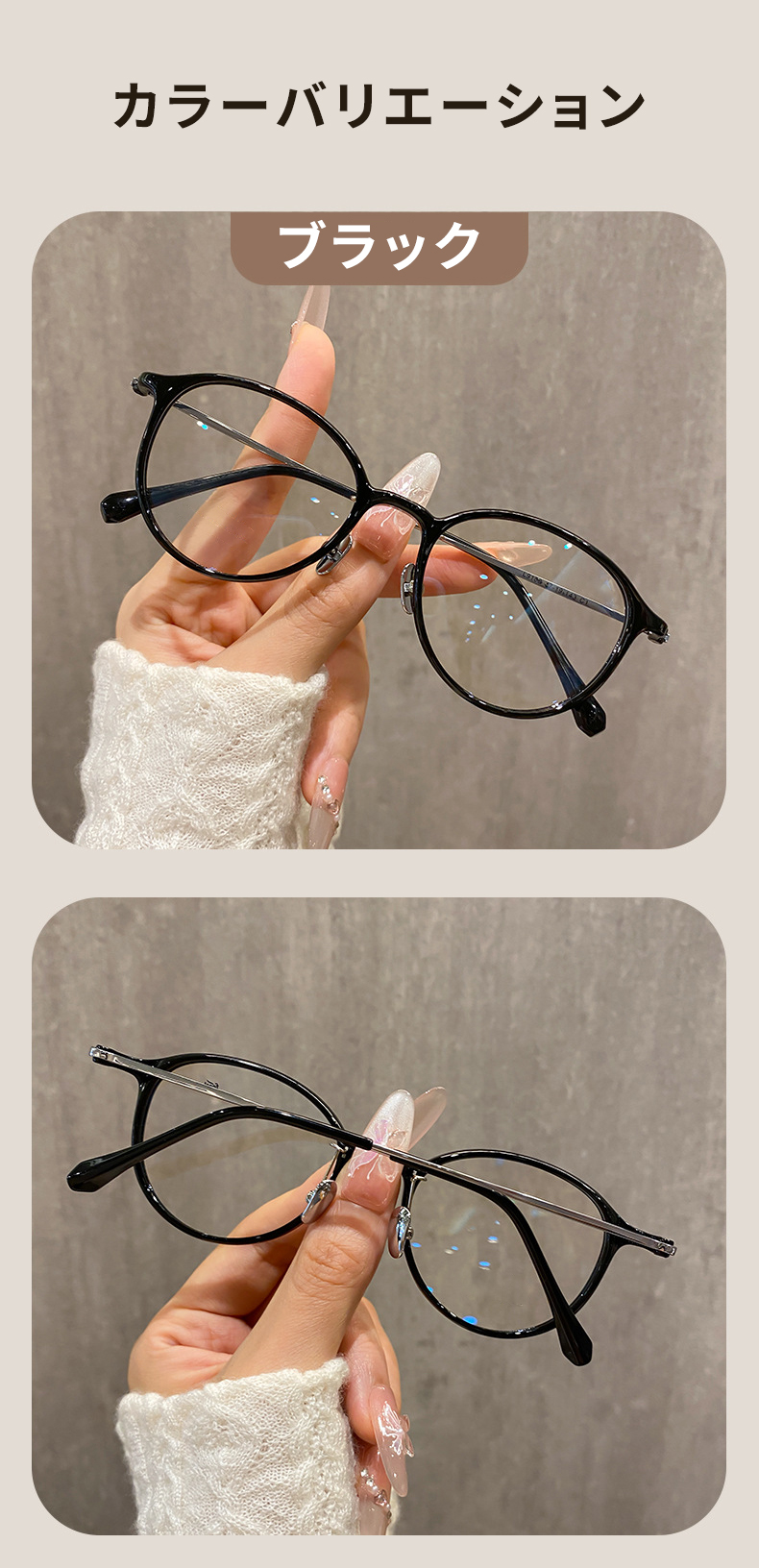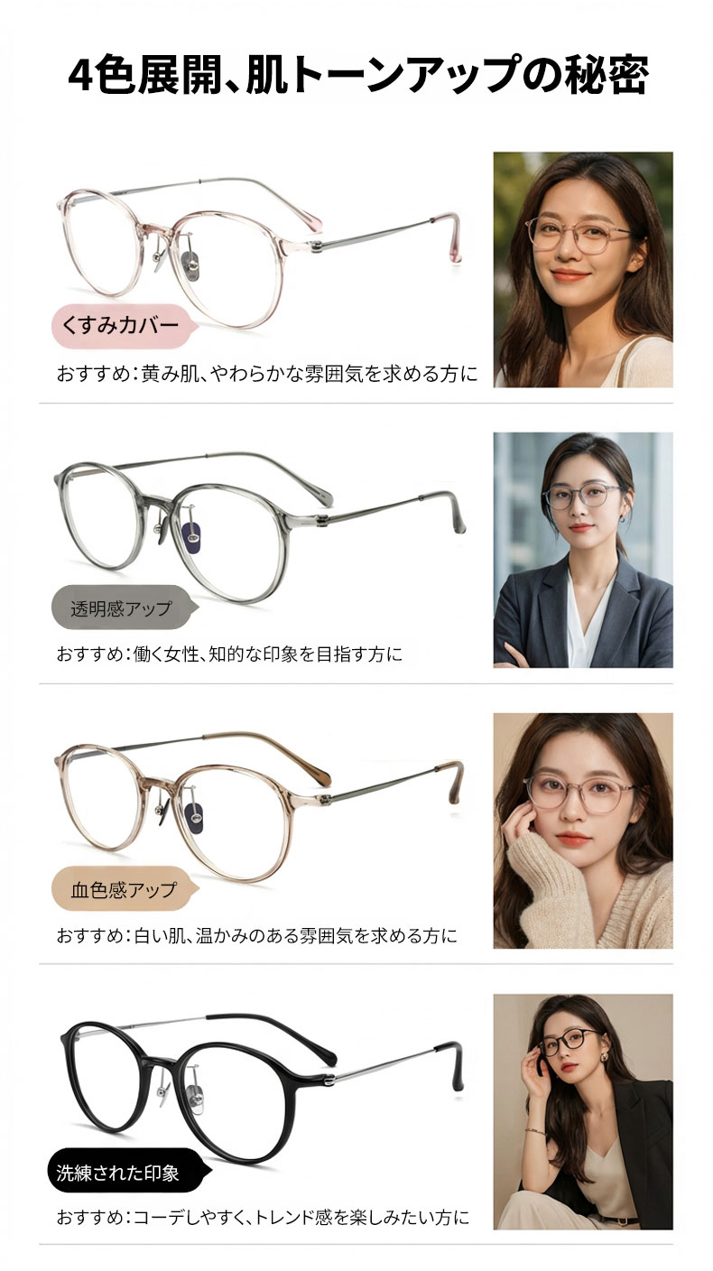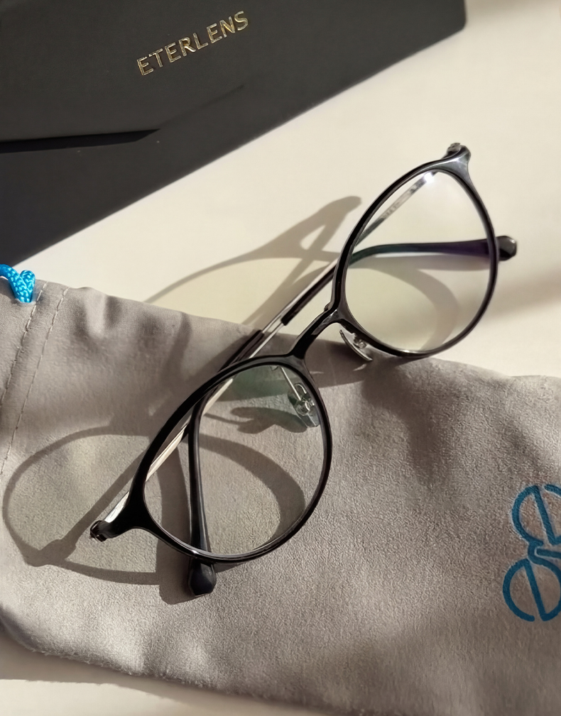 【時の円環・超軽量】Eterlens 7g メガネ 度付き対応 おしゃれ 丸メガネ | 透明感のあるグレー・ボストン | 金属アレルギー対応・ユニセックス