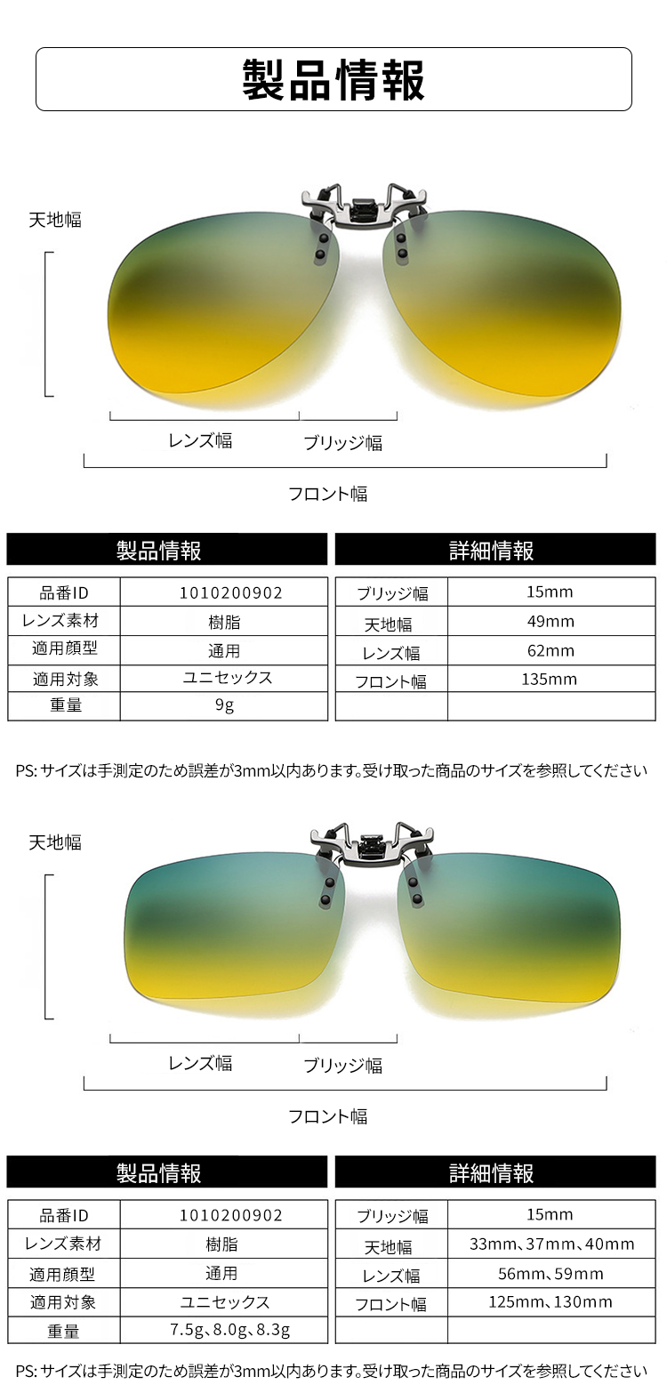 Eterlens|9.1g 運転用紫外線対策|昼夜兼用樹脂偏光レンズ|クリップオン式サングラス