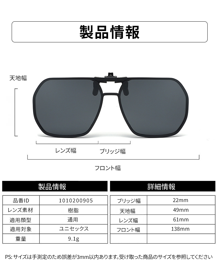Eterlens|9.1g ダブルブリッジアビエーター型|眩しさ対策・調光レンズ|跳ね上げ式クリップオンドライブメガネ