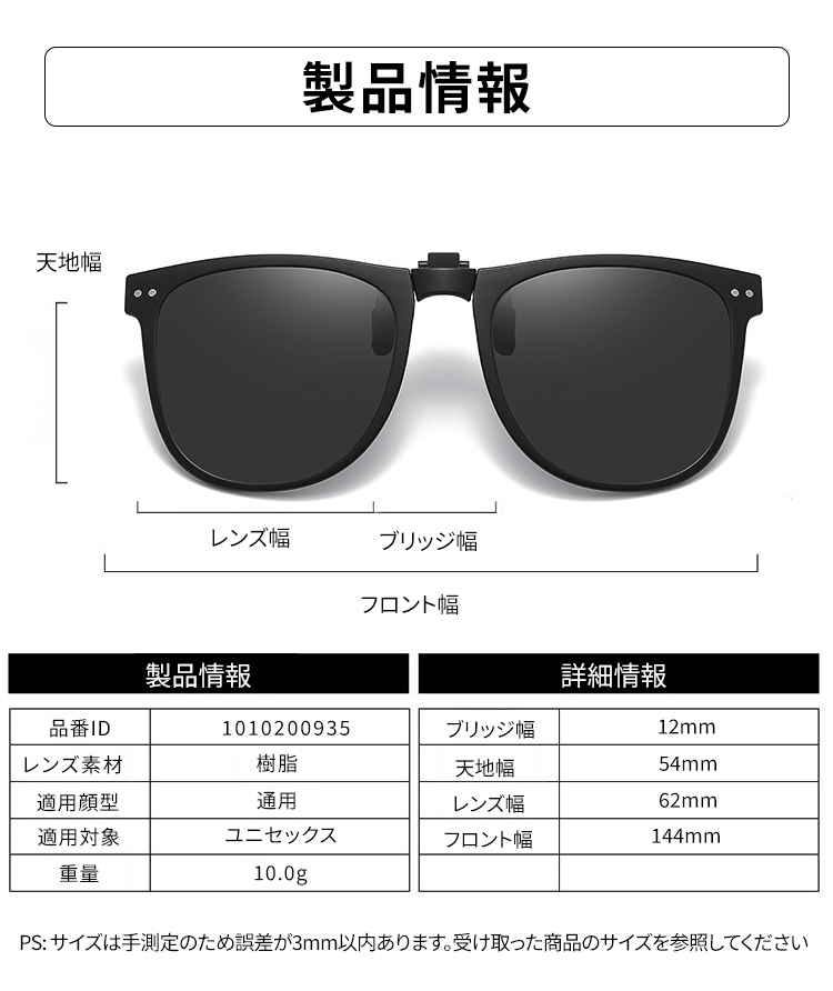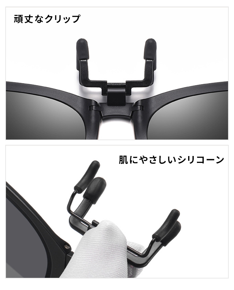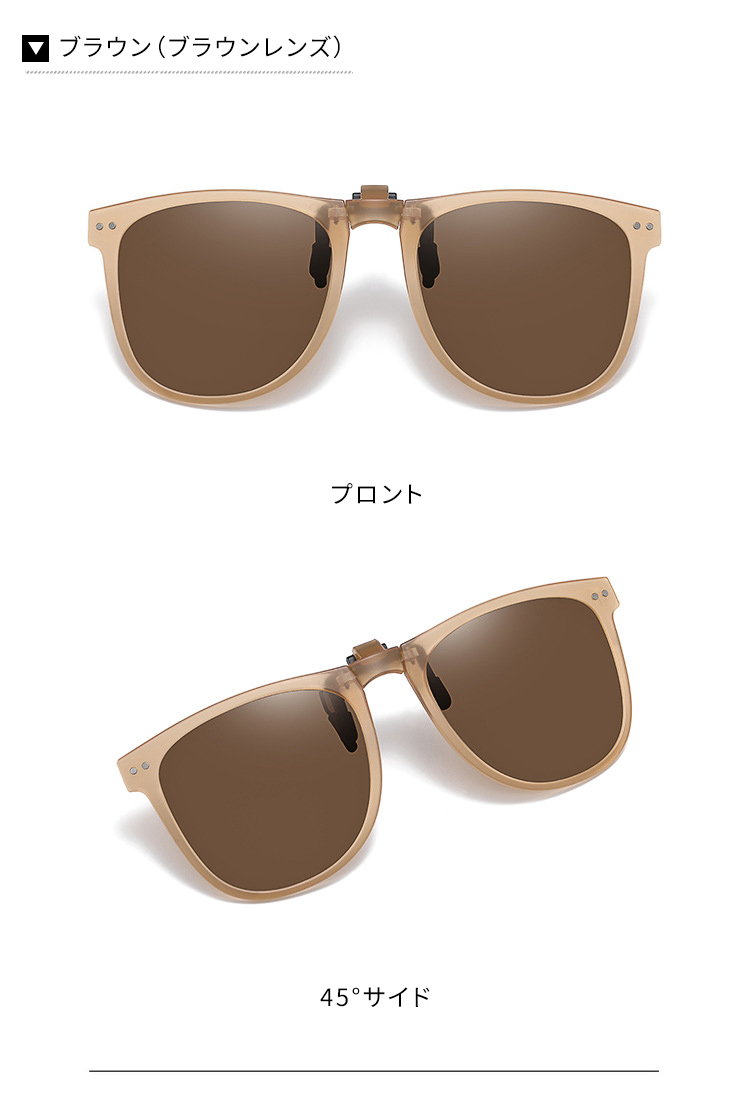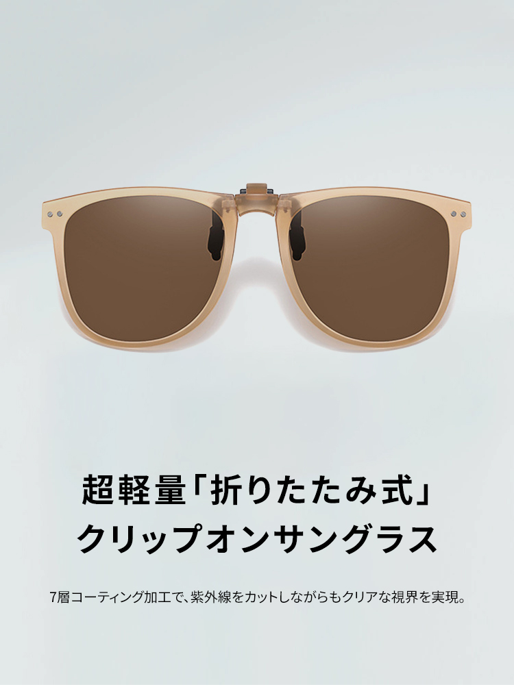Eterlens|10g リベット付きメタルフレーム|偏光・眩しさ対策|跳ね上げ式折りたたみクリップオンサングラス