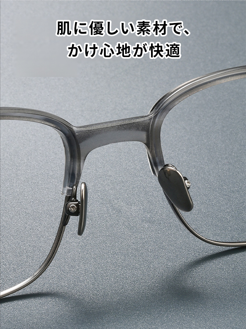 グレーのフレームが落ち着いた印象を演出し、オフィススタイルからカジュアルスタイルまで、幅広いシーンに自然に馴染みます。