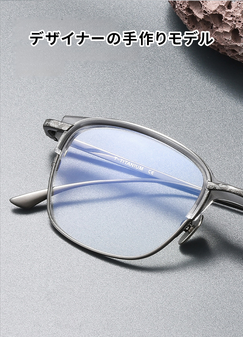 超軽量のチタン素材を採用し、強度と軽さを両立。繊細なテンプルと立体的な彫刻ディテールが高級感を一層引き立てます。度付きレンズにも対応可能です