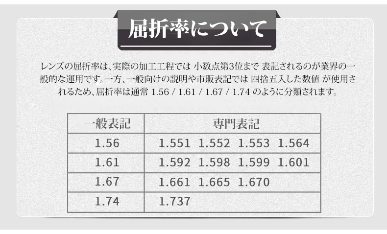 ※近視は「マイナス(−)」、遠視や老眼は「プラス(+)」が数字の前につきます。