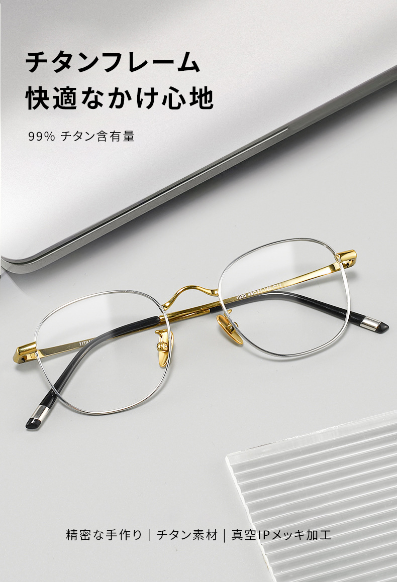 【小顔効果・純チタン】ETERLENS 手作り 8.4g 超軽量メガネ| IPメッキで錆びない | 日系スタイル ビッグフレーム | 軽量 快適 ビジネス