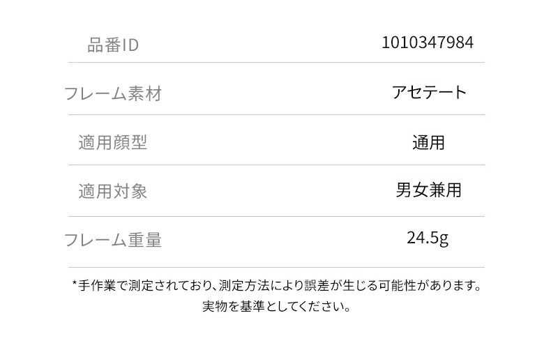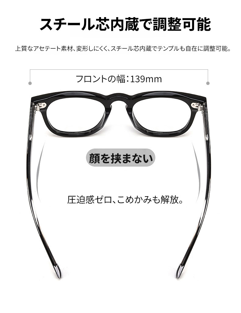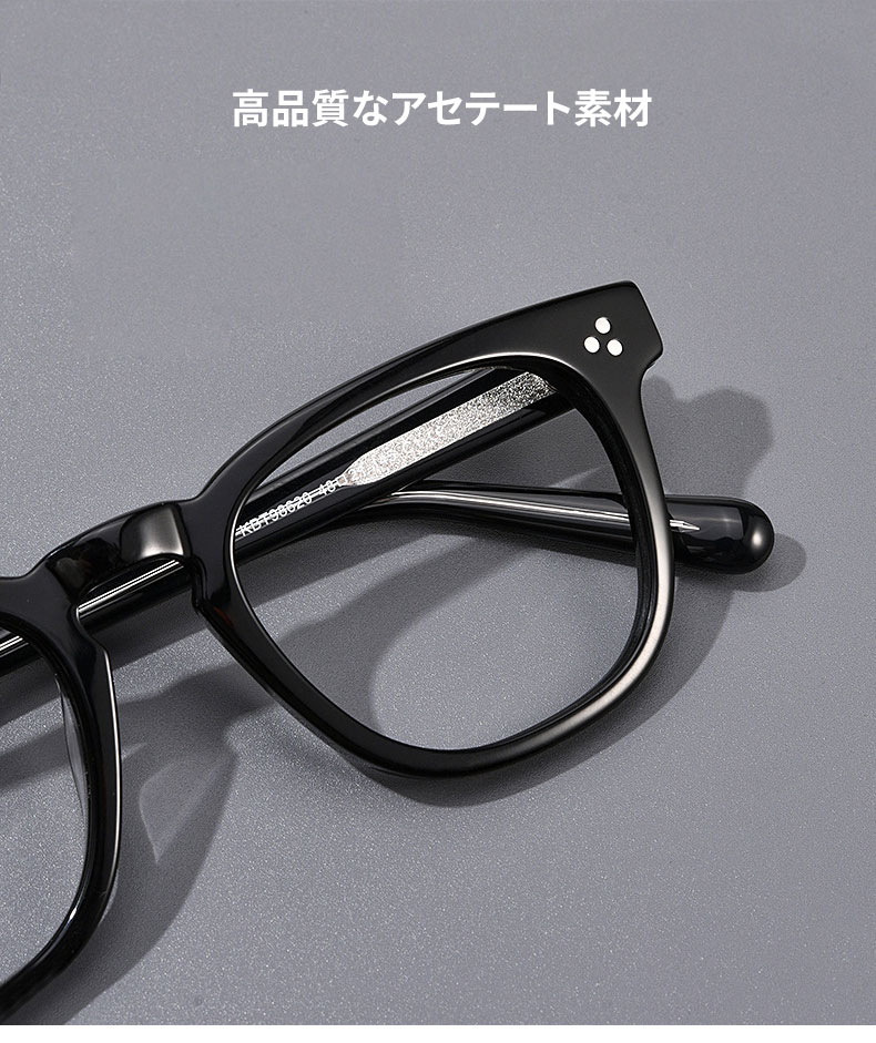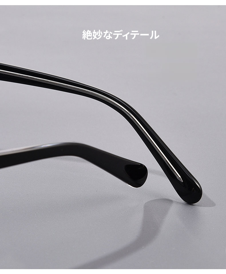 上質なアセテートを使用し、軽量で艶やかな仕上がりに。テンプルには「芯張りデザイン」を採用し、変形しにくく、長時間かけても安定したフィット感を保てます。度付きレンズにも対応しています。