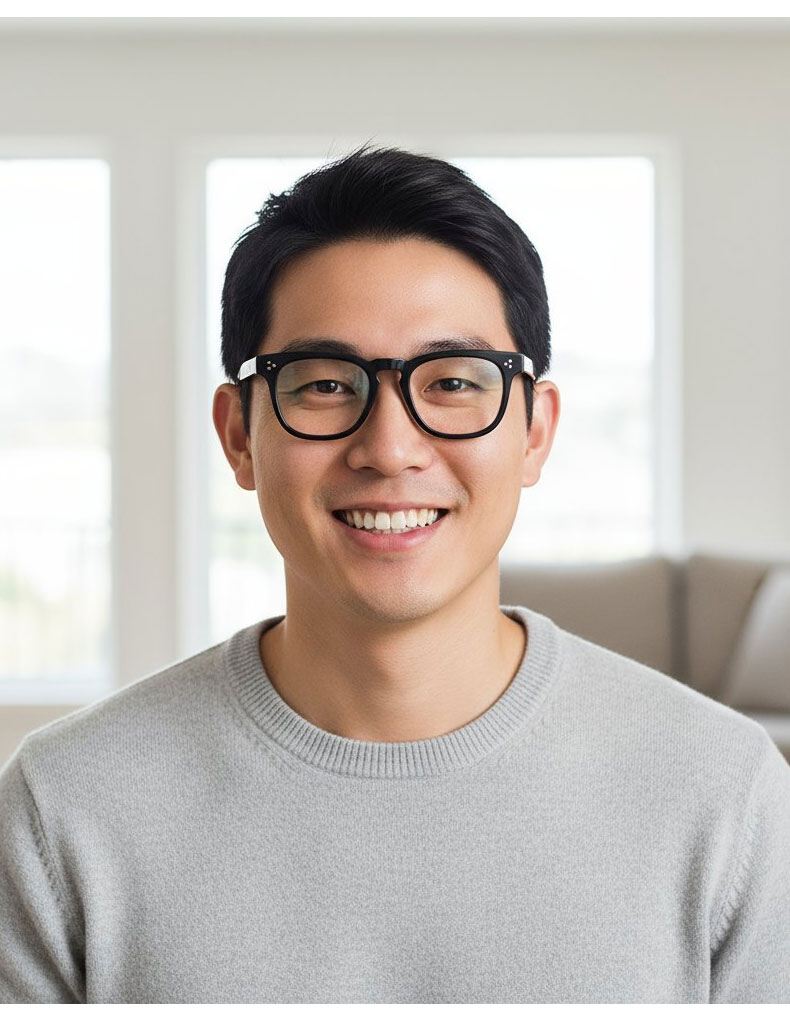 ウェリントン型が顔まわりを引き締め、通勤にもカジュアルにも合わせやすい万能デザインです。