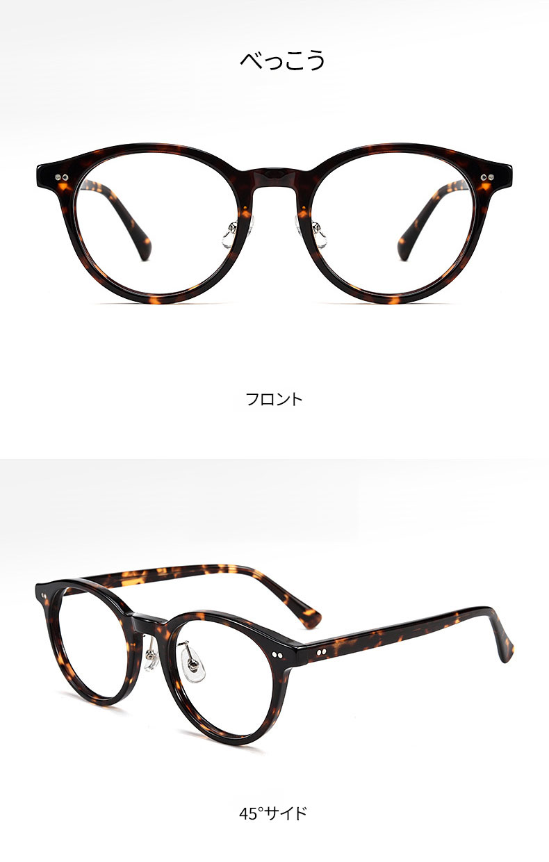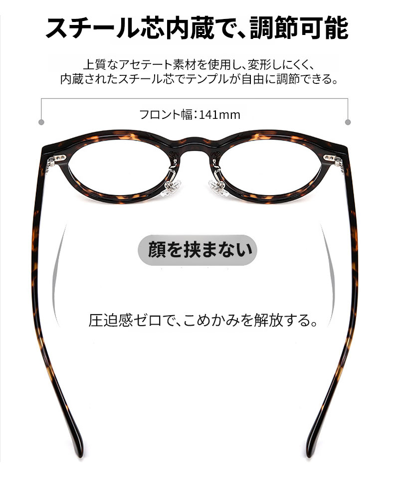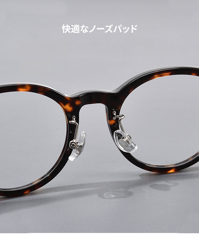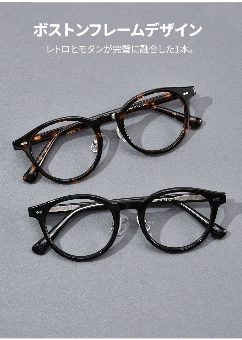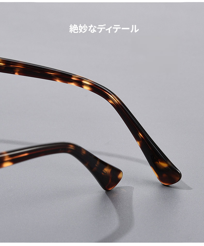 アセテート素材を採用し、軽くて快適な掛け心地を実現。度付きレンズにも対応しています。