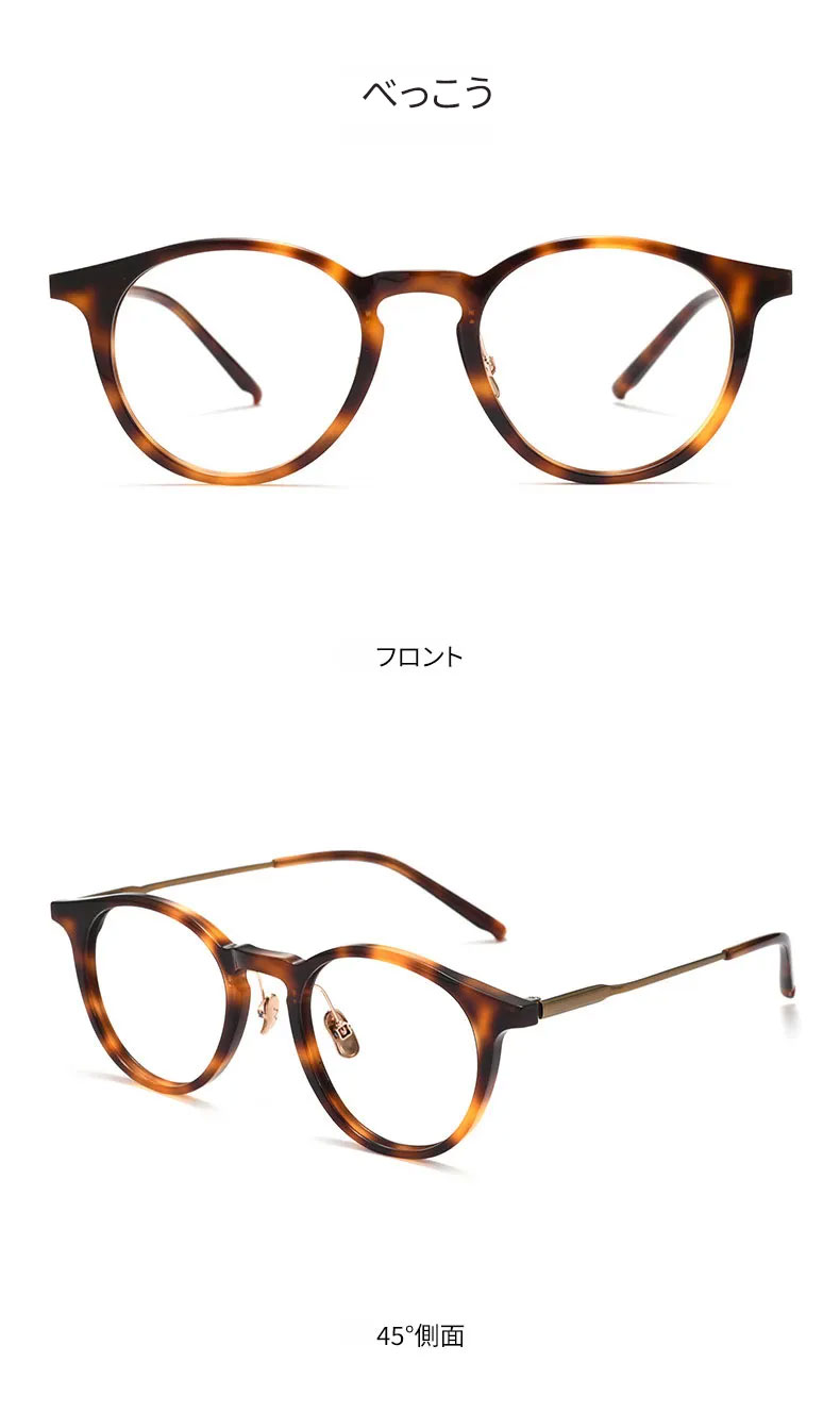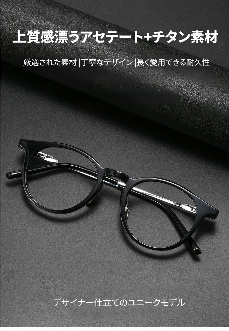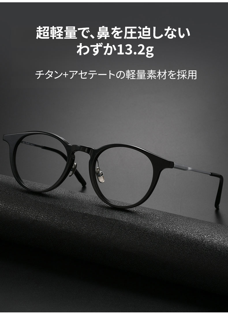 アセテートフロントとチタンテンプルを組み合わせ、軽くて快適な掛け心地を実現しています。度付きレンズにも対応可能です。
