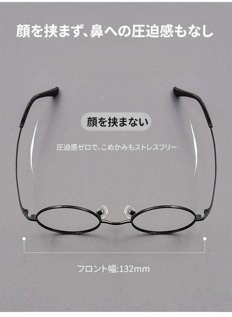 軽量メタルフレームを採用し、長時間掛けても負担になりにくい。細いテンプルと調整しやすいノーズパッドで安定したフィット感を実現しています。カスタムの度付きレンズにも対応可能です。