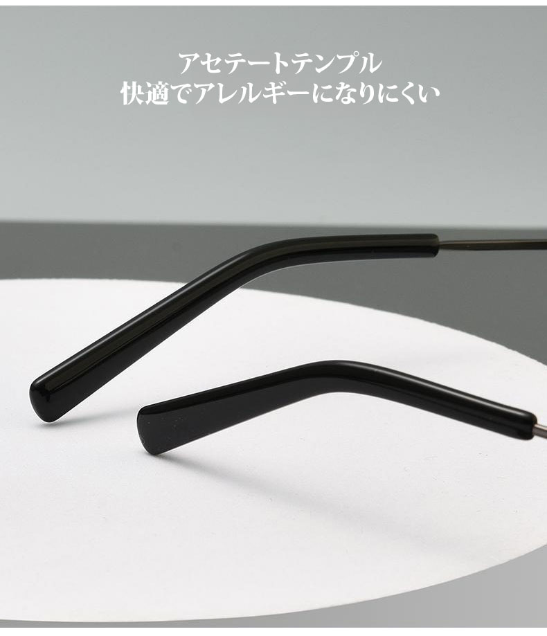 フロントは丈夫なアセテート、テンプルは軽量チタンを採用し、軽くて安定感のある掛け心地を実現。ノーズパッドは柔らかく、長時間の使用でも快適です。
