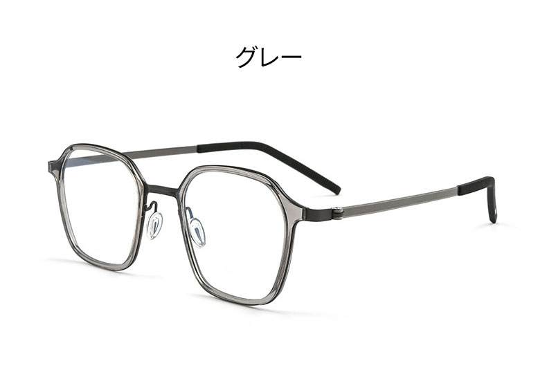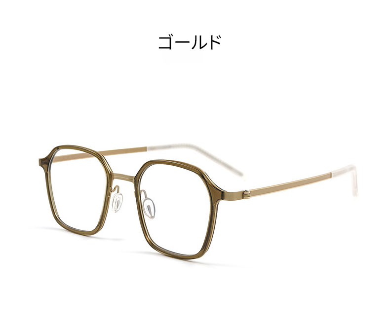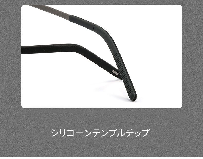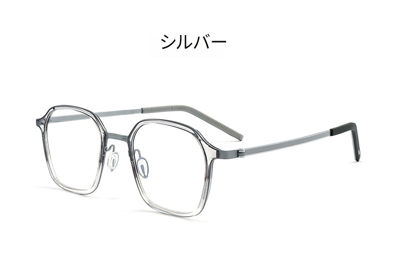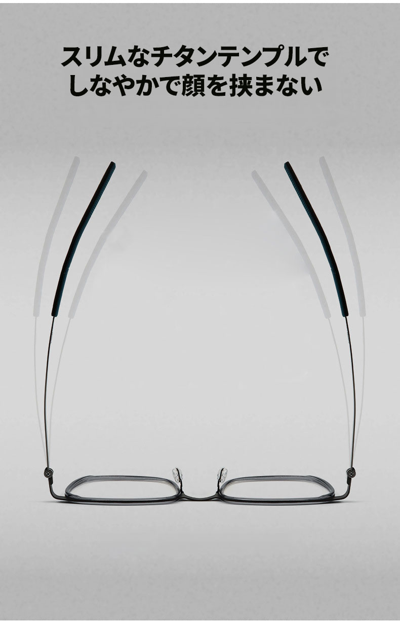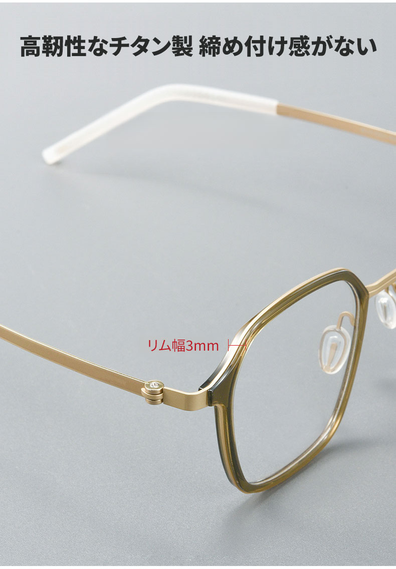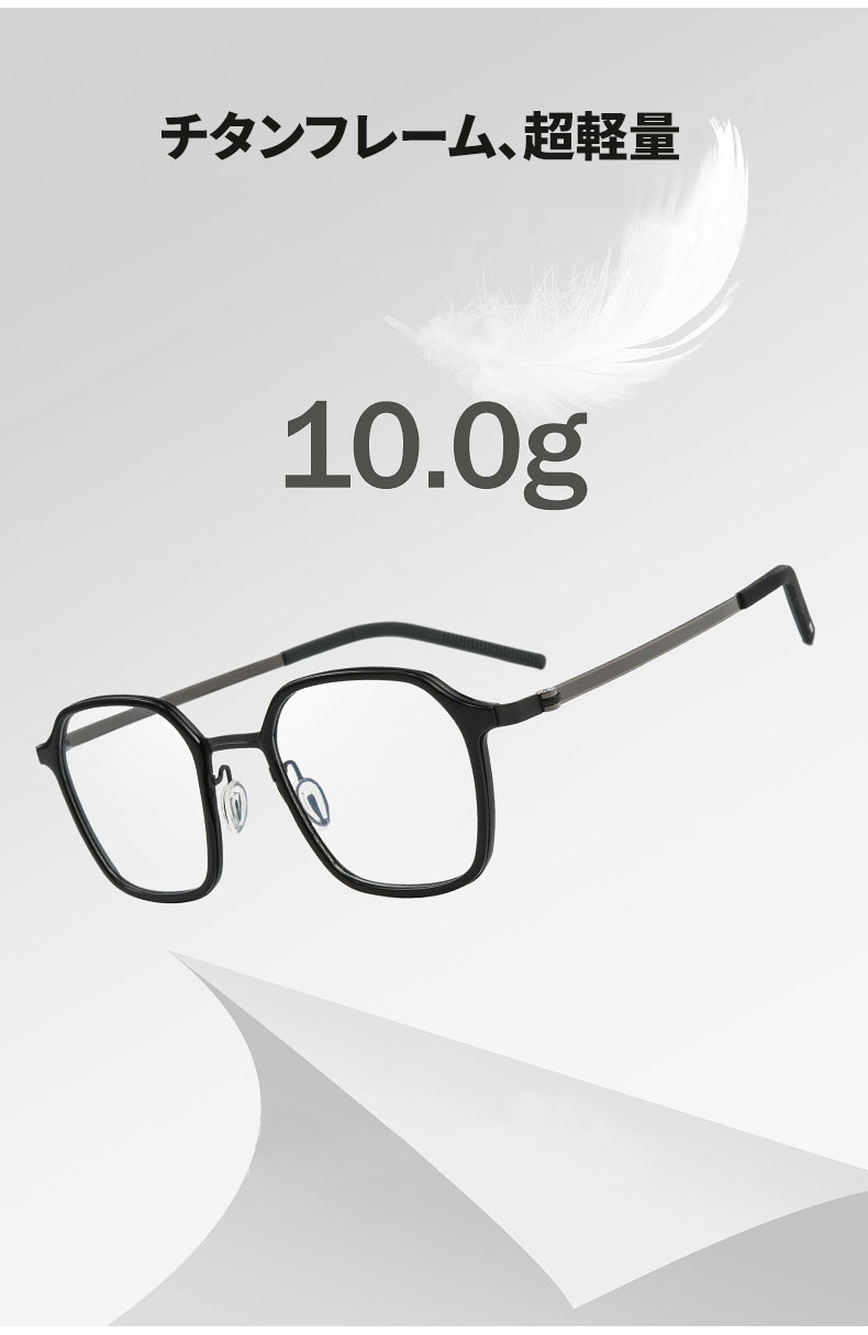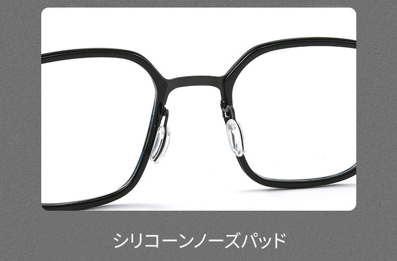 フレーム素材はハーフチタンで、軽量かつ丈夫で、しなやかな掛け心地が特徴です。シリコンノーズパッドと滑り止めテンプルで安定感が高く、長時間の使用でも快適です。