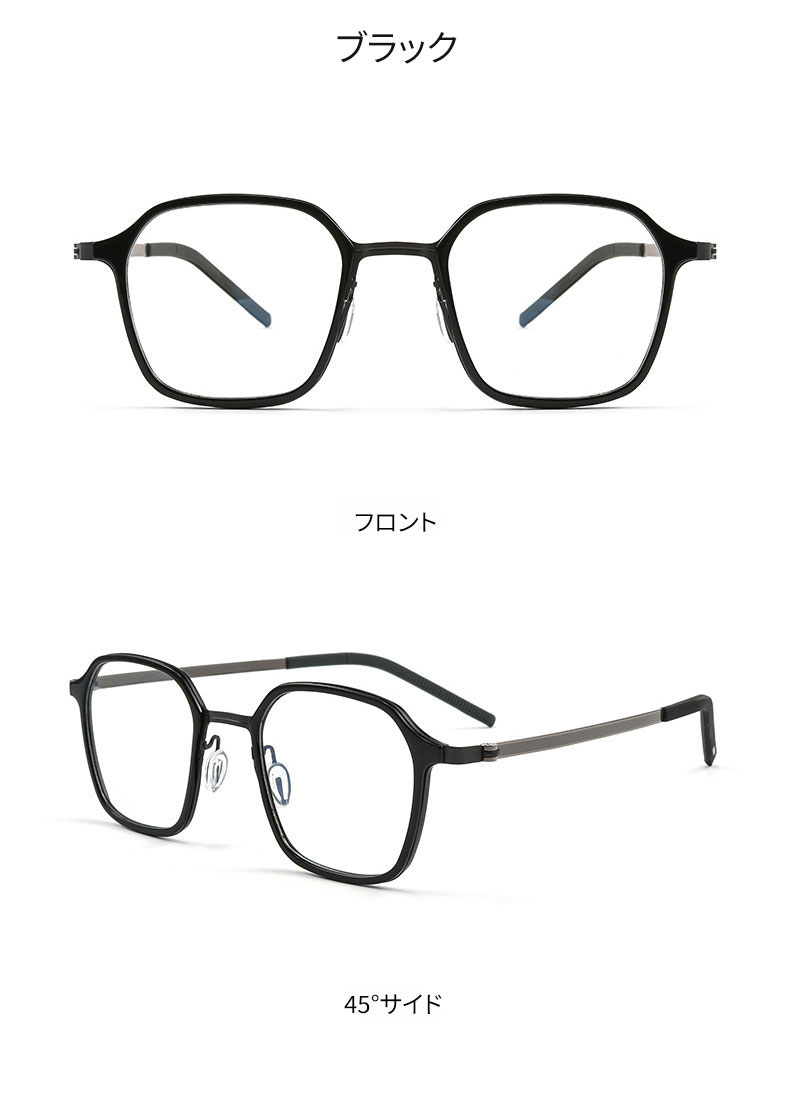 シャープなラインが際立つインダストリアル風スクエアフレームです。無駄のないミニマルデザインが現代的で、ビジネスにも韓国風コーデにも馴染み、軽やかな雰囲気に仕上がっています。