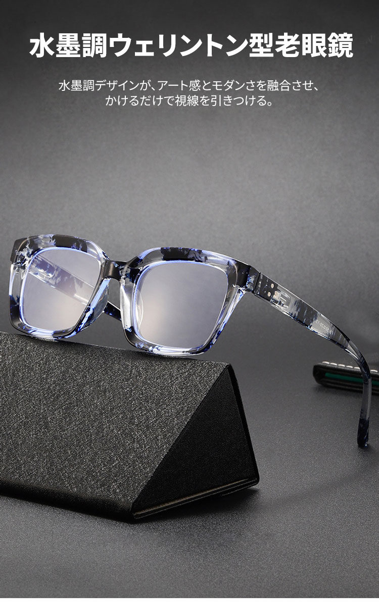 【大人気・老眼鏡】ETERLENS | 水墨画風デザイン「大きめウェリントン」 | ビッグフレーム 小顔効果 | バネ蝶番 快適