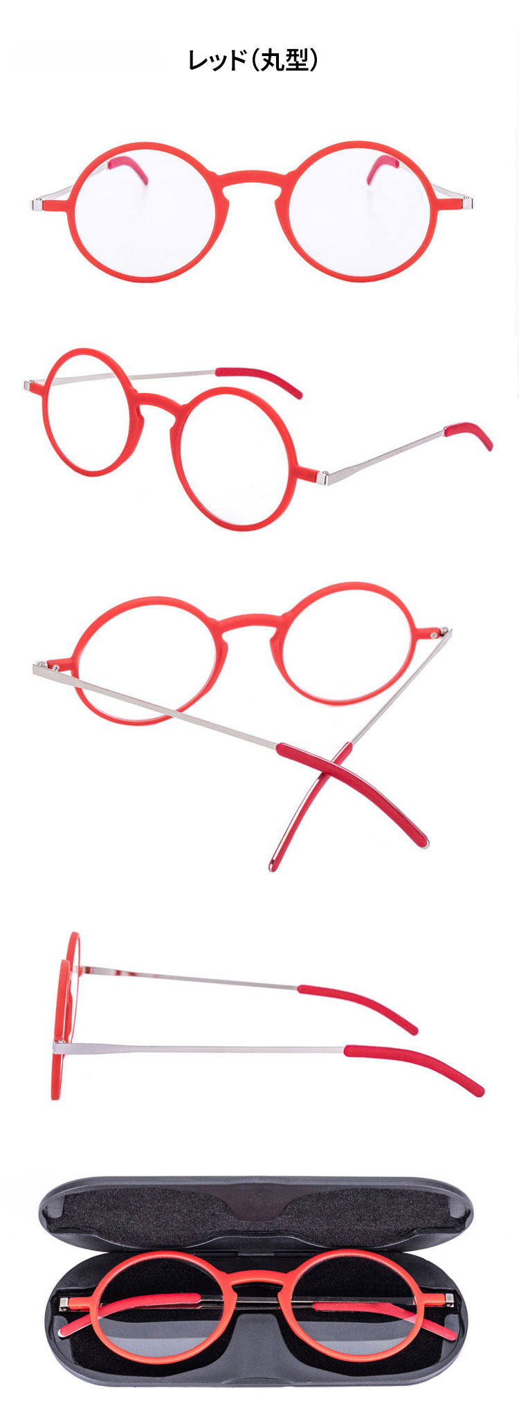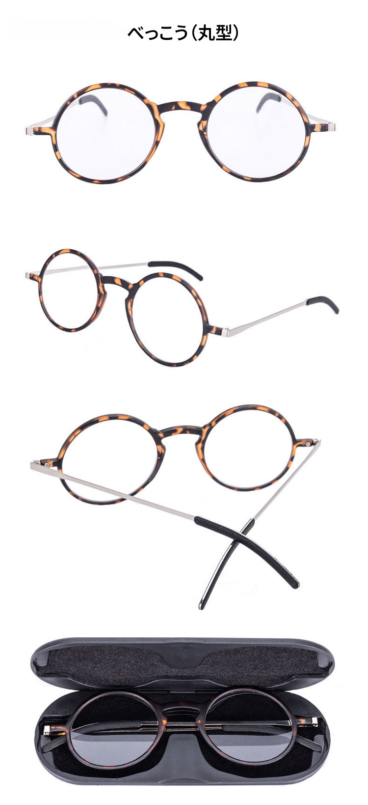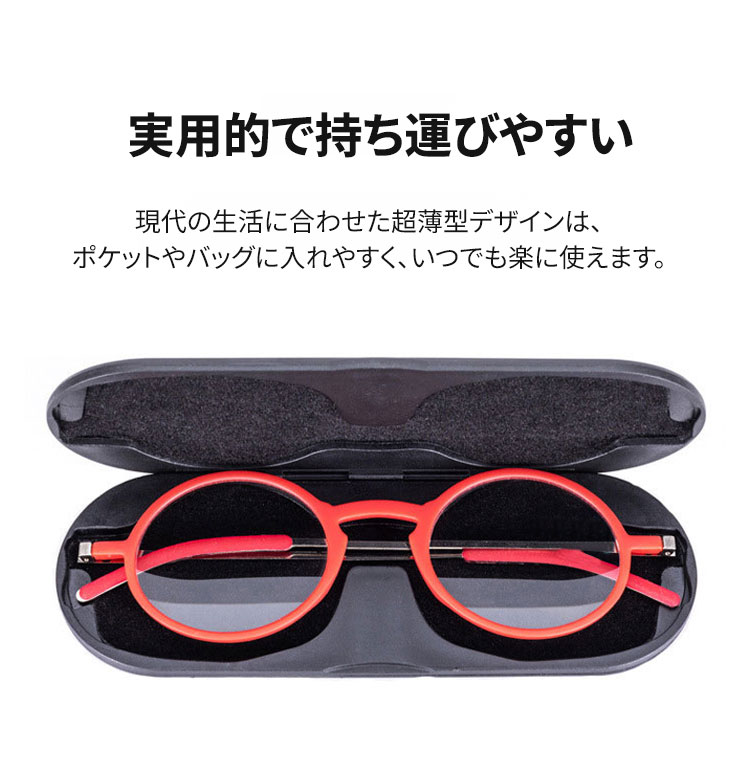 【超薄型・持ち運びに便利】Eterlens 老眼鏡 おしゃれ 丸メガネ | TR+メタル超軽量フレーム | ケース付き・男女兼用