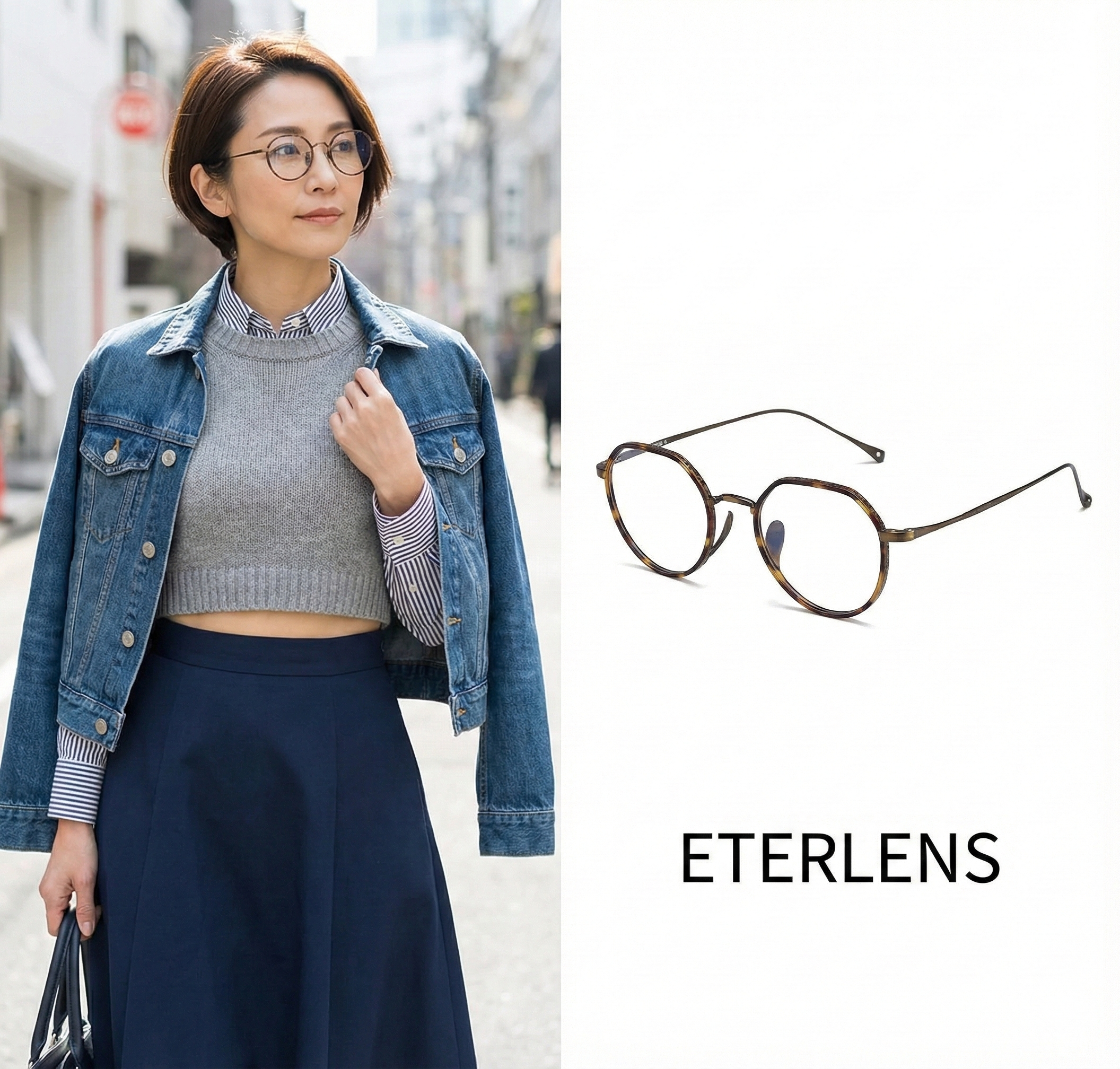 【-5歳の若見え】Eterlens | 7.2g 驚きの軽さ | 小顔効果クラウンパント纯チタン眼鏡