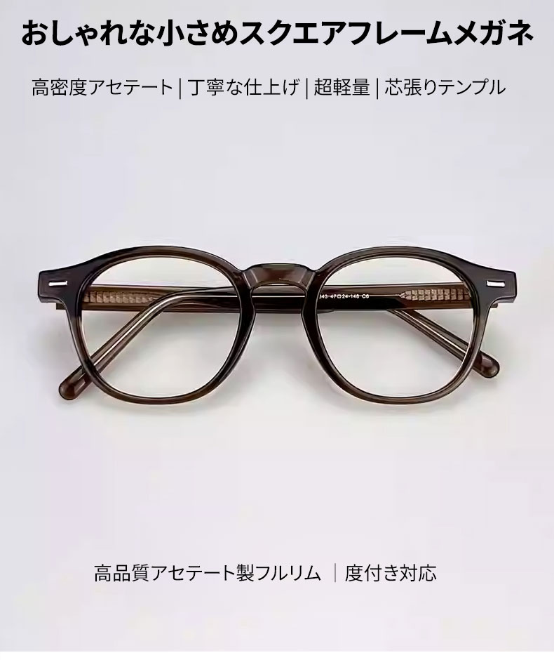Eterlens|レトロ風小さめスクエアフレームメガネ|高密度アセテート素材