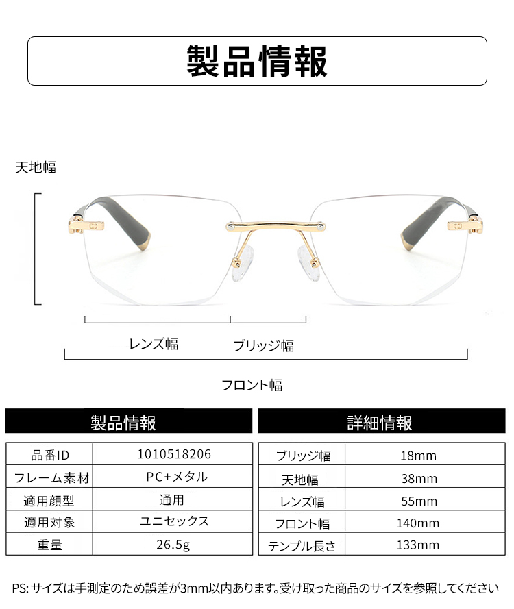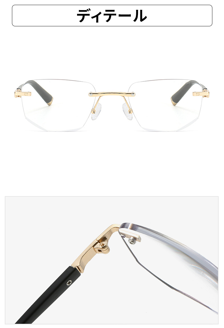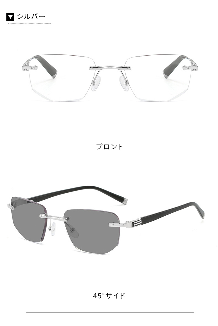 リムレスの洗練されたデザインは、ビジネススーツにもカジュアルなウェアにも自然にマッチ。メタルの輝きが大人の上質さを引き立て、機能美とファッション性を両立します。