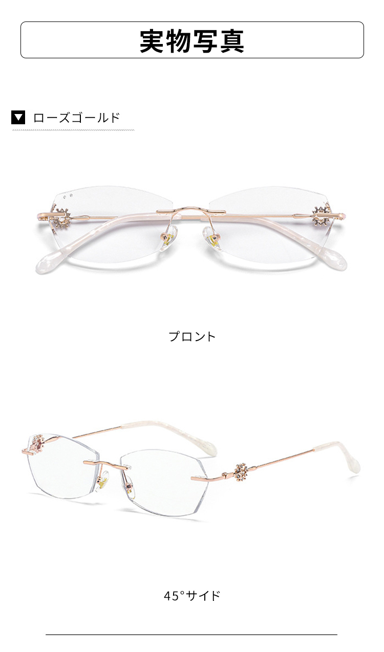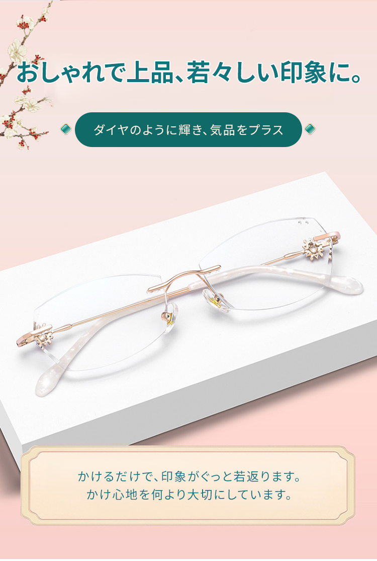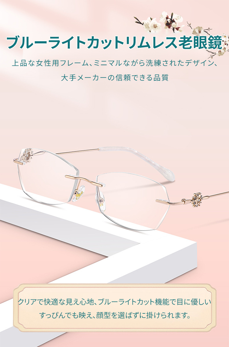 Eterlens|8g 超軽量合金リムレスラインストーン付き老眼鏡|ブルーライトカット|エレガントで控えめ