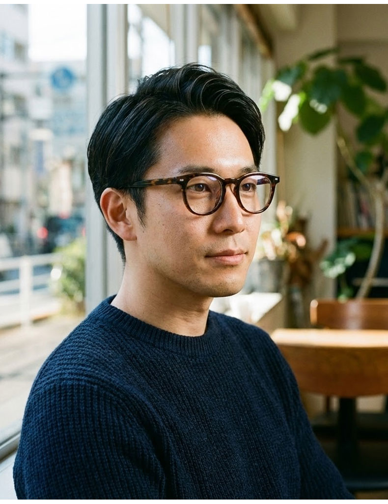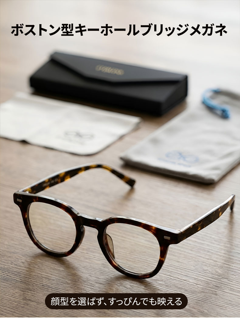 Eterlens 知性の窓|18.6g ボストン型キーホールブリッジ超軽量芯張りメガネ|度付き対応|素顔にマッチ