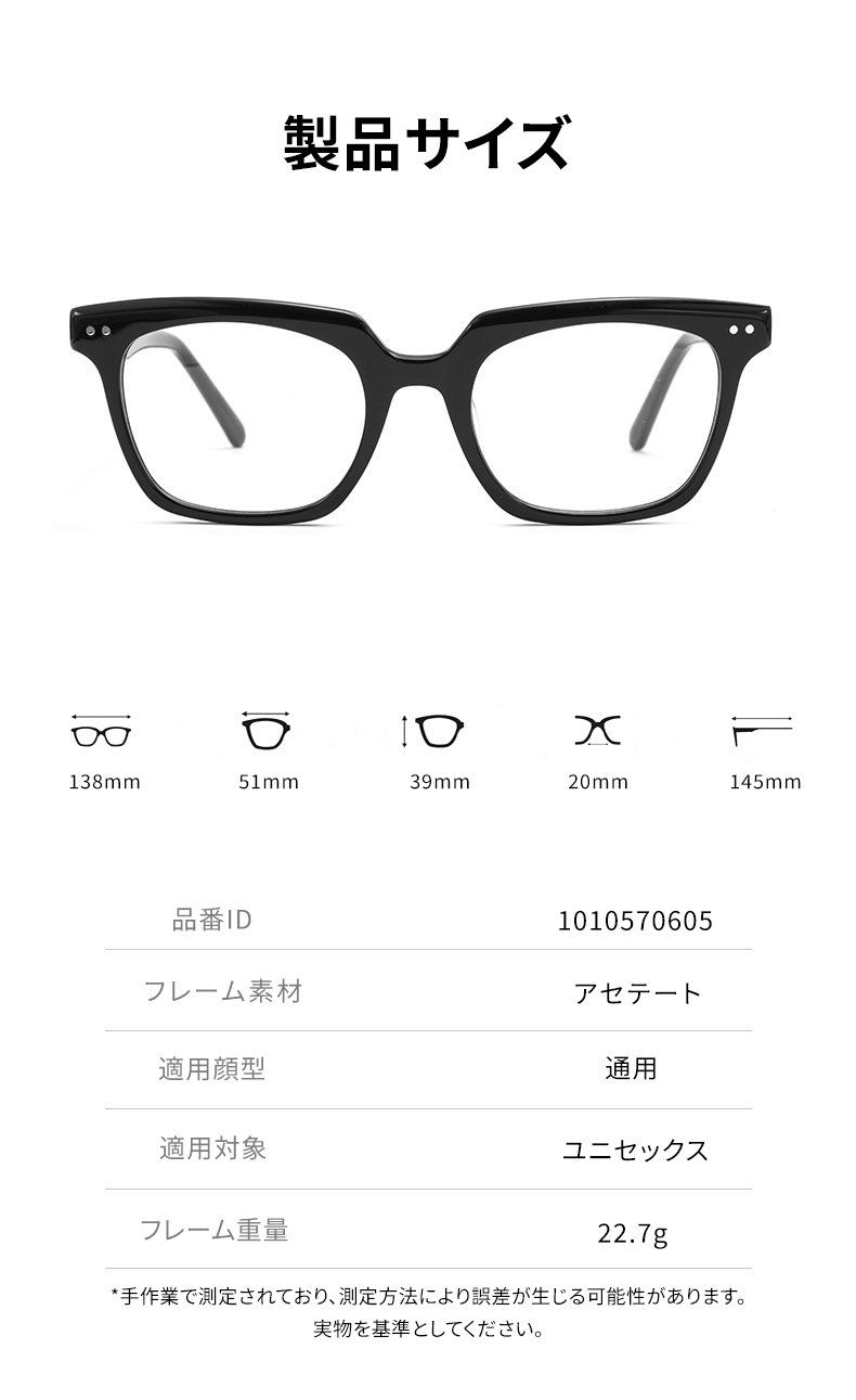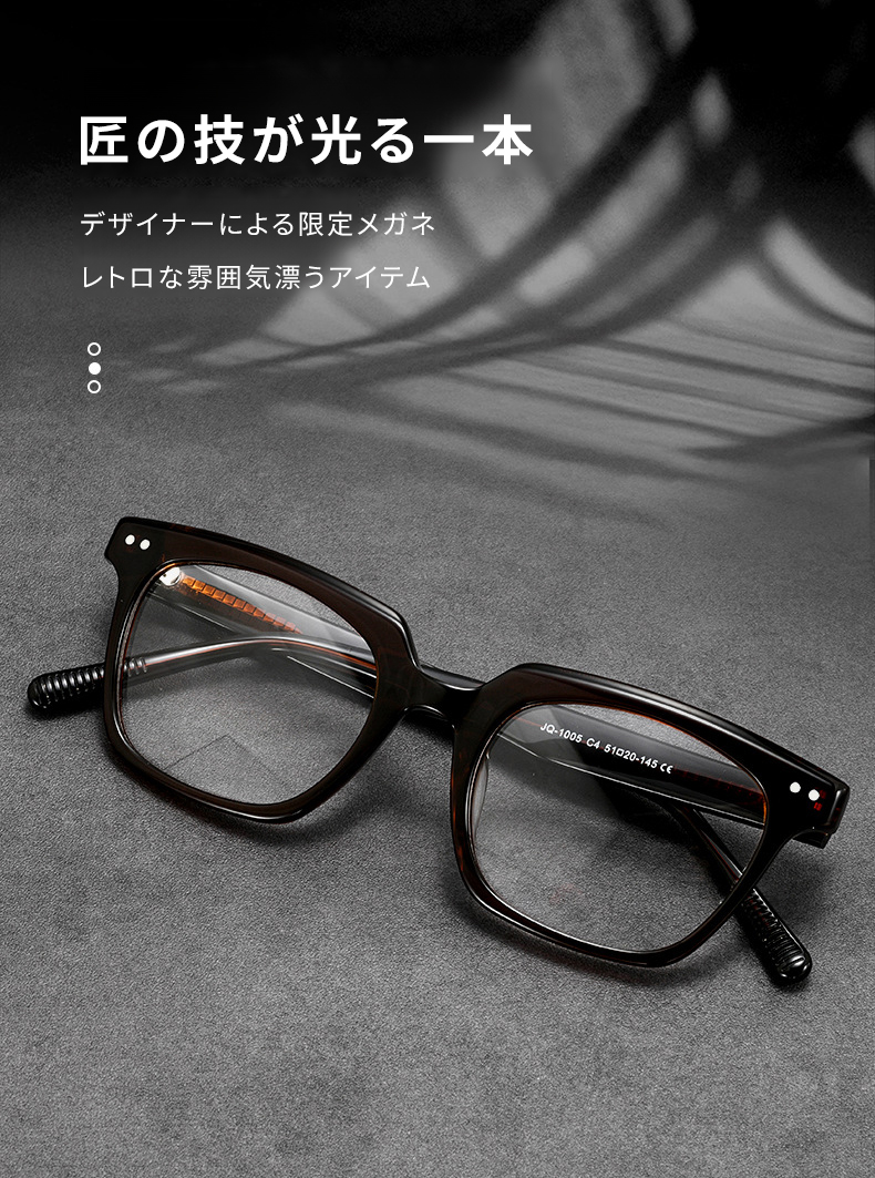 Eterlens 知性の窓|アセテート製ウェリントン型メガネ|クラシックな太セル