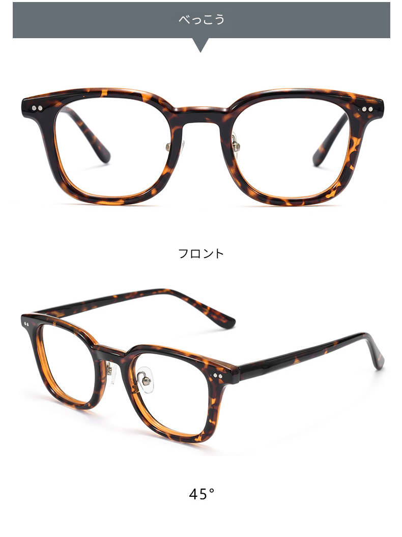 【小顔効果・鼻パッド付】Eterlens 知性の窓 メガネ 度付き おしゃれ ウェリントン | アセテート太縁フレーム | べっ甲柄レトロ・男女兼用