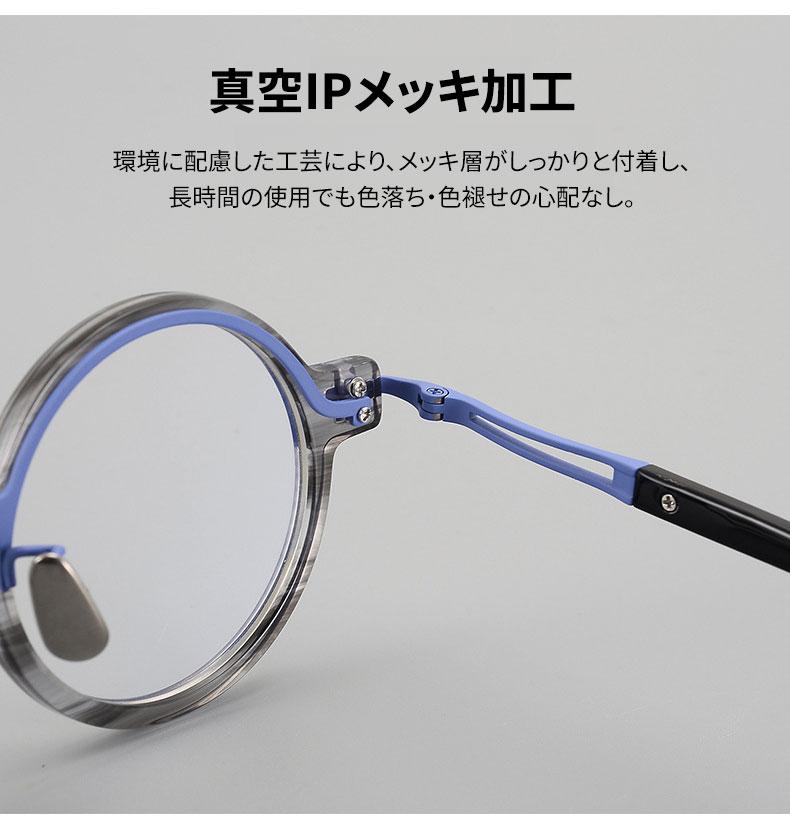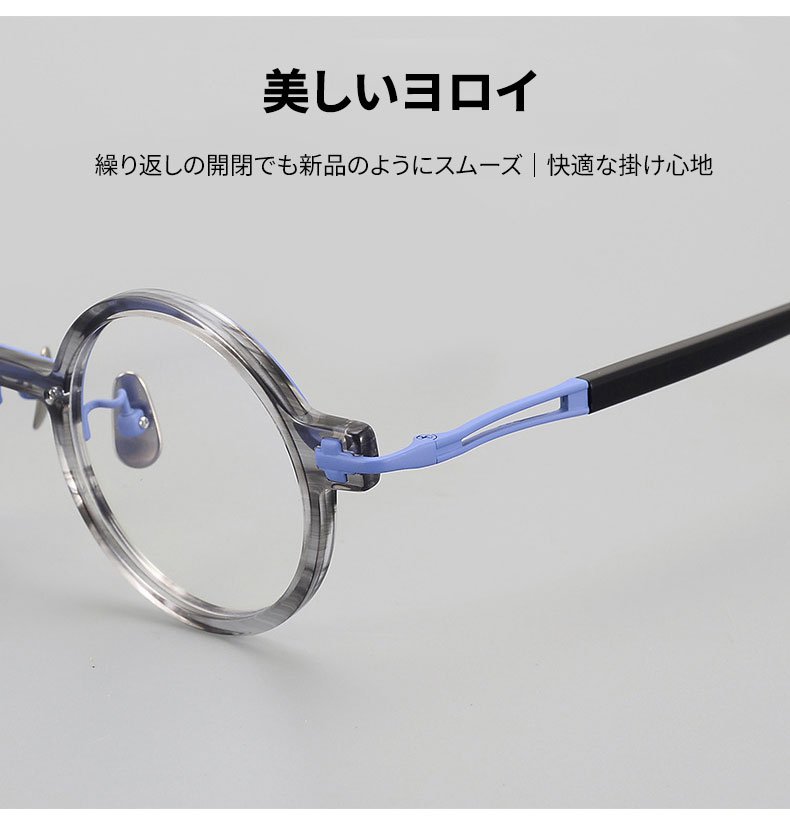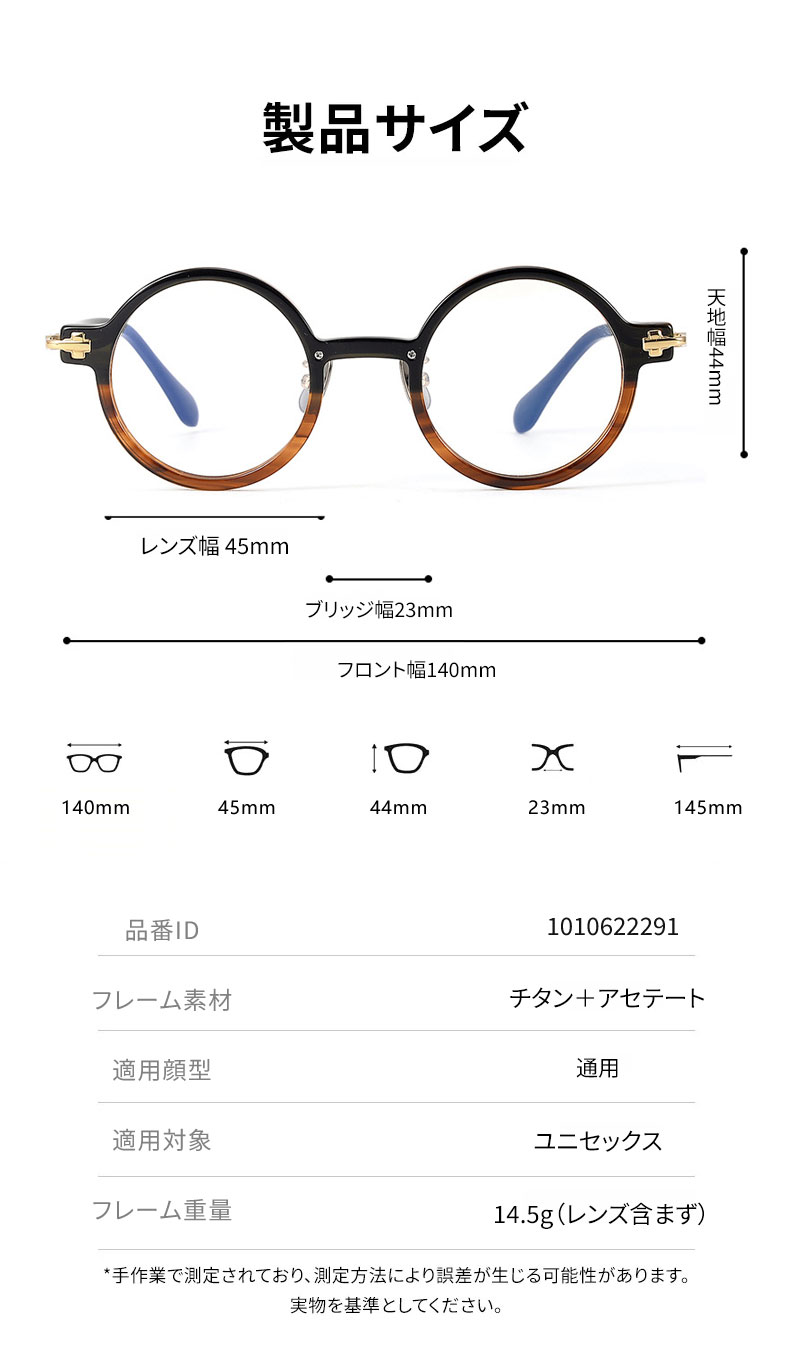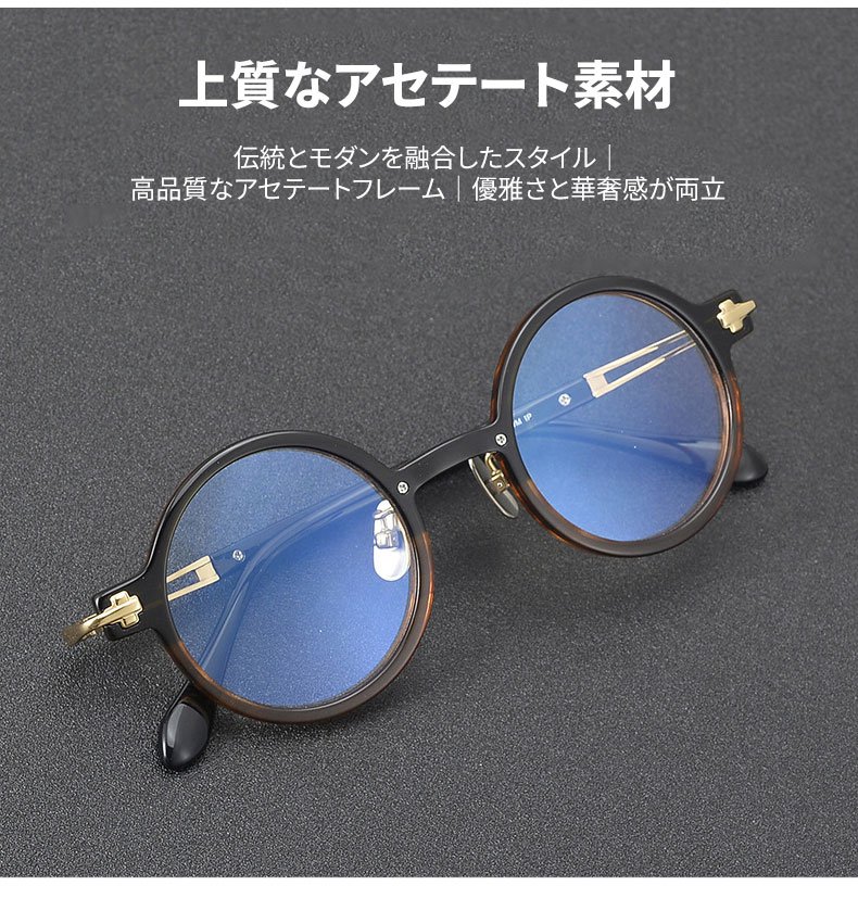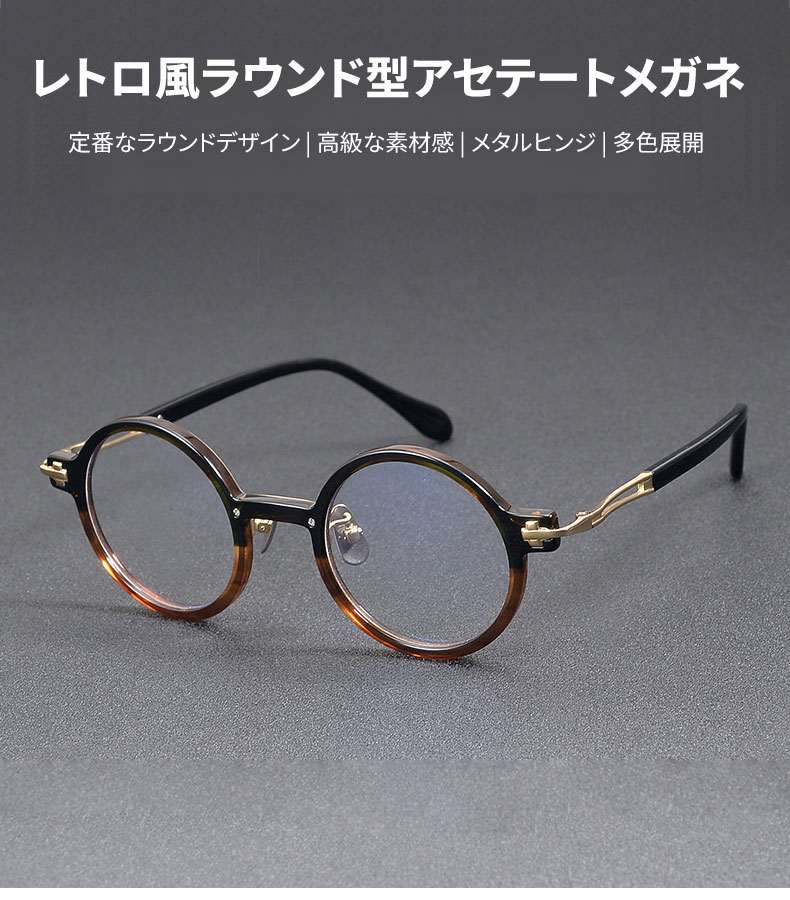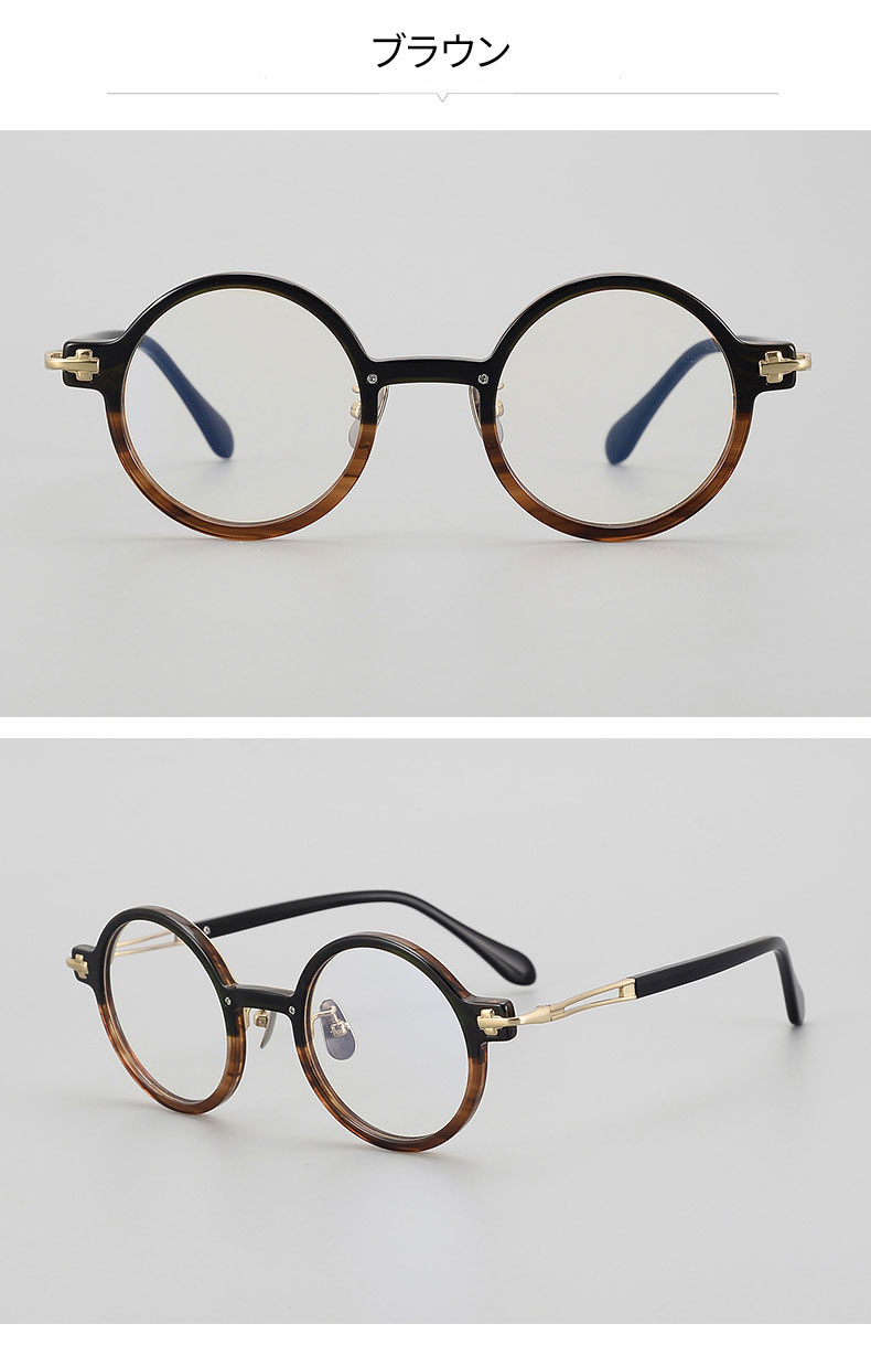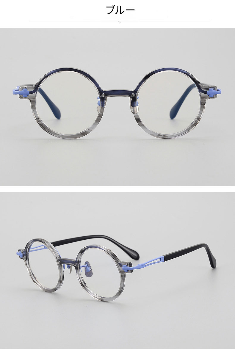 【個性的・異素材MIX】Eterlens 時の円環メガネ14.5g 度付き おしゃれ 丸メガネ | 純チタン+アセテート素材 | レトロ黒縁・男女兼用