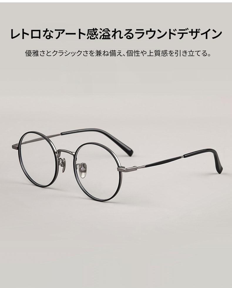 【時の円環・レトロモダン】Eterlens おしゃれ 丸メガネ | 日本製純チタン超軽量フレーム | 度付き対応・知的で上品な大人デザイン