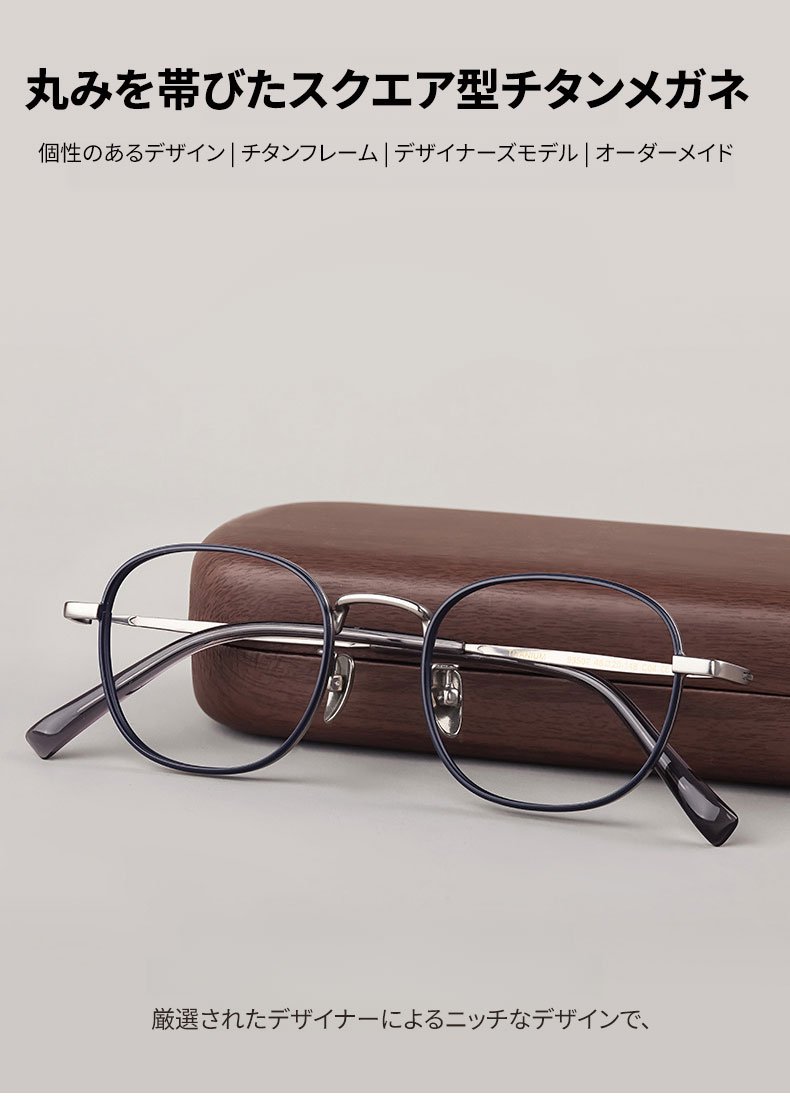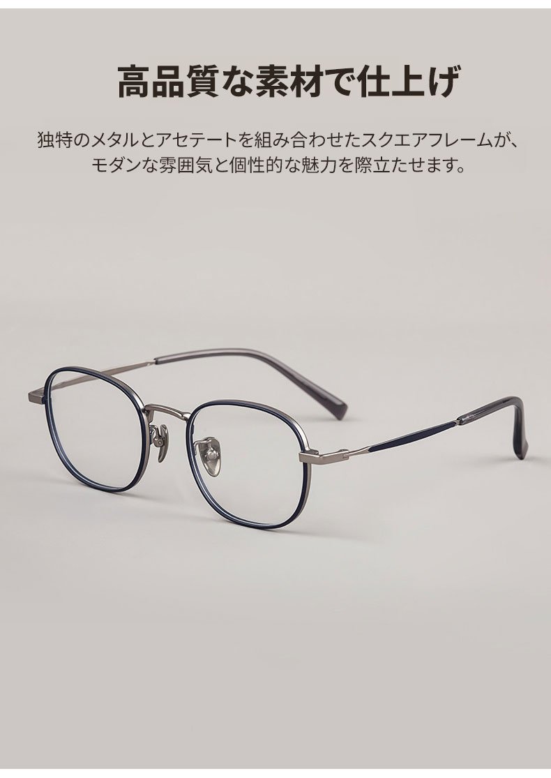 【小顔効果・ミニマルなデザイン】Eterlens 度付きメガネ レディース おしゃれ | 17gチタン超軽量フレーム | 知的なスクエア型