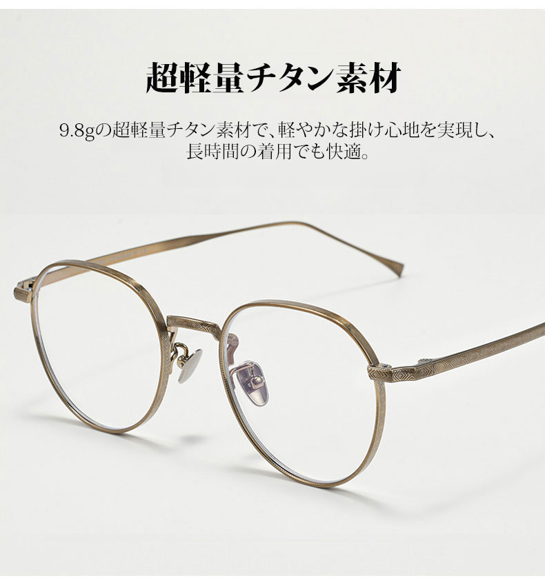 【小顔効果・超軽量】Eterlens 度付き対応 メガネ おしゃれ ボストン型 | 9.8g超軽量チタンフレーム | 知的なボストン・ユニセックス