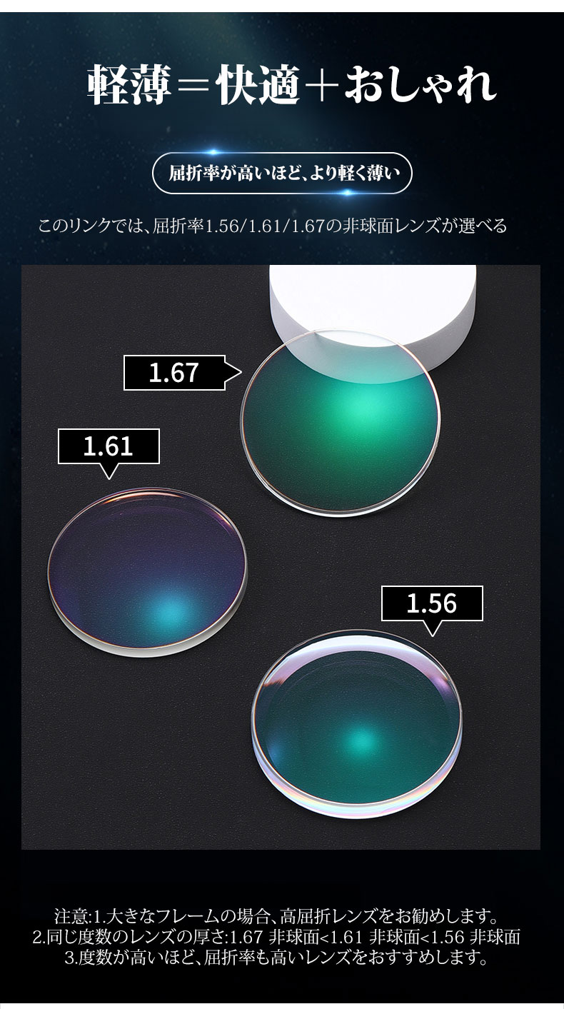 ※高品質レンズを標準装備薄型レンズ