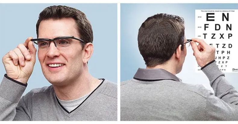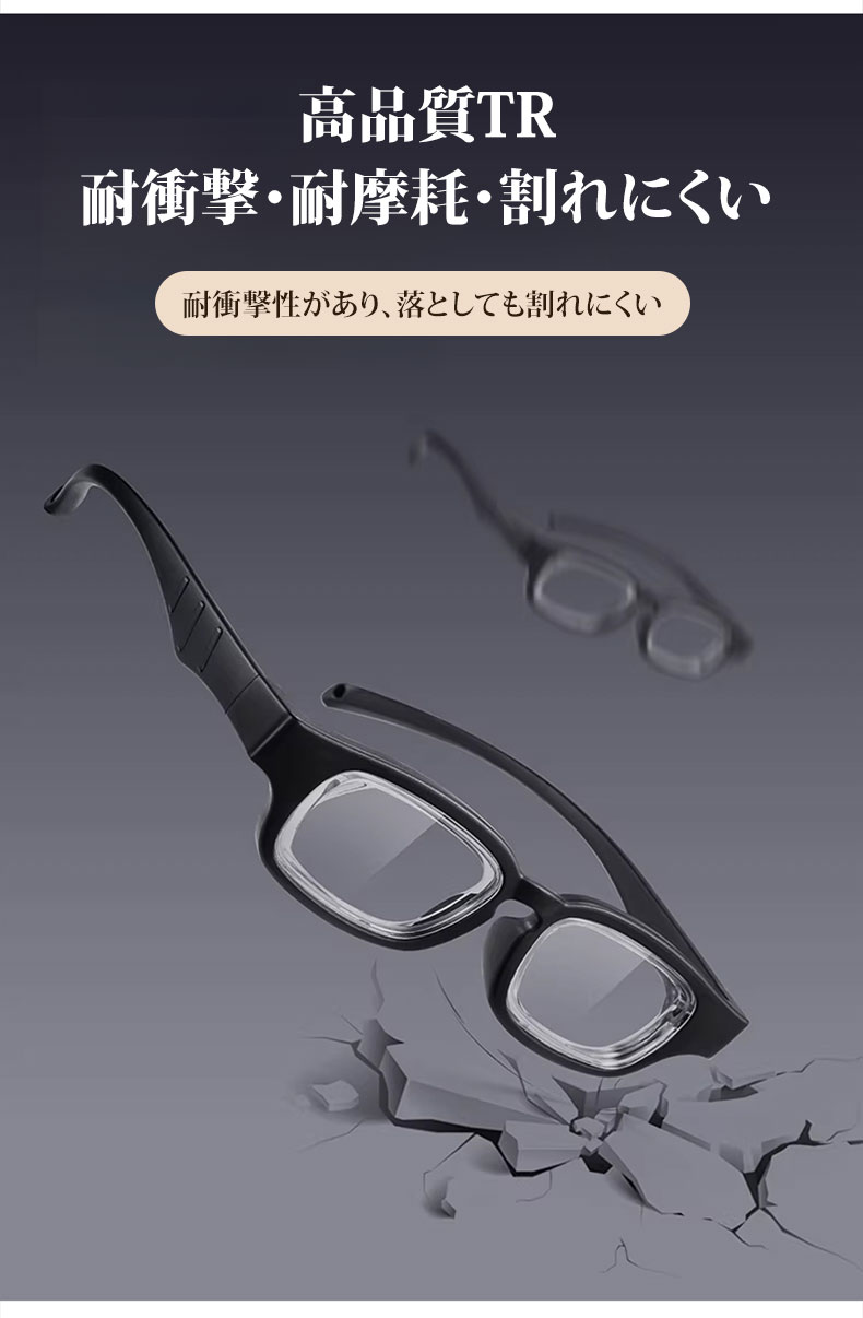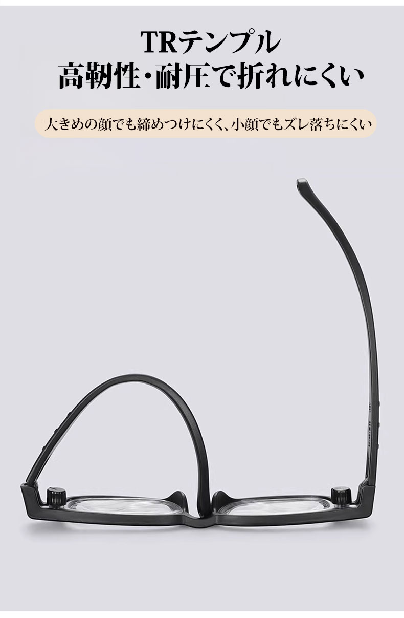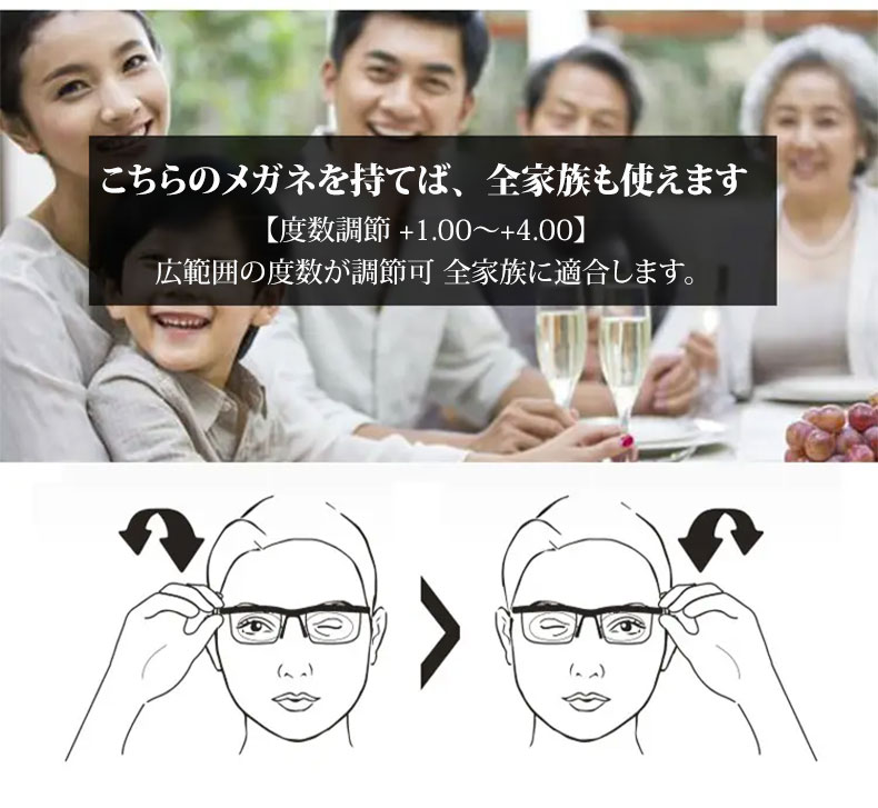 【度数調節 +1.00〜+4.00・1本で解決】Eterlens 自動で度数が変えられる老眼鏡|超軽量TR素材|ブルーライトカット機能付き|黒縁スクエア型