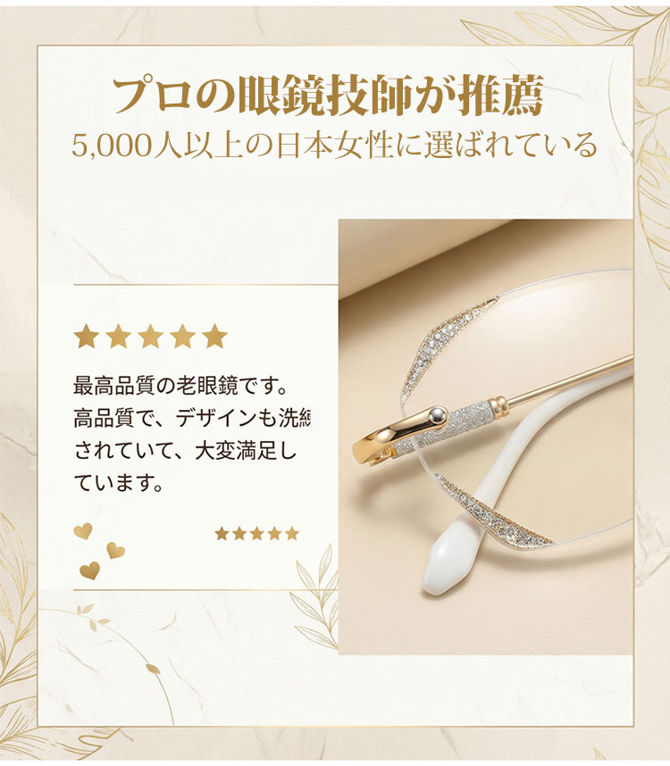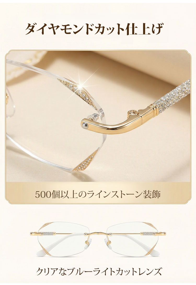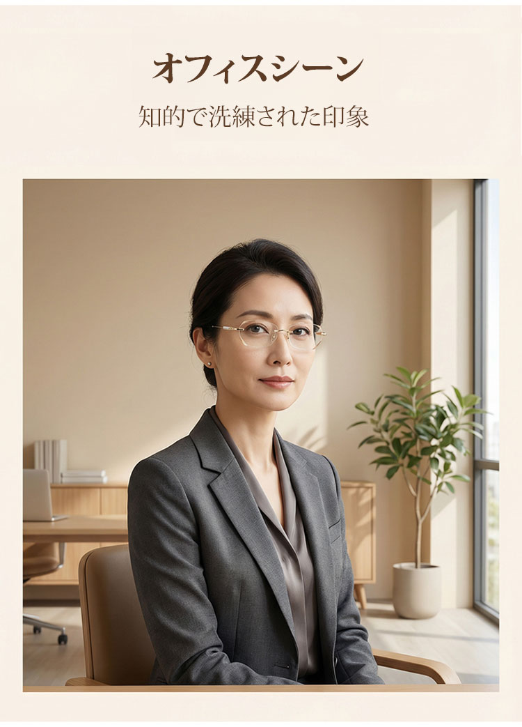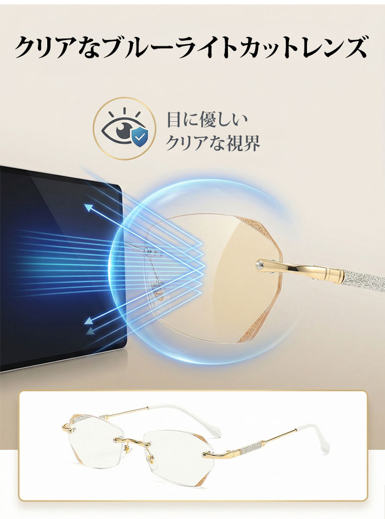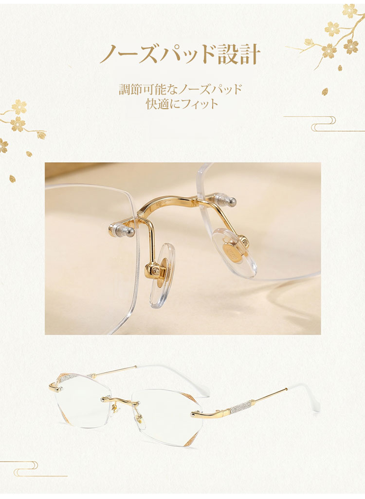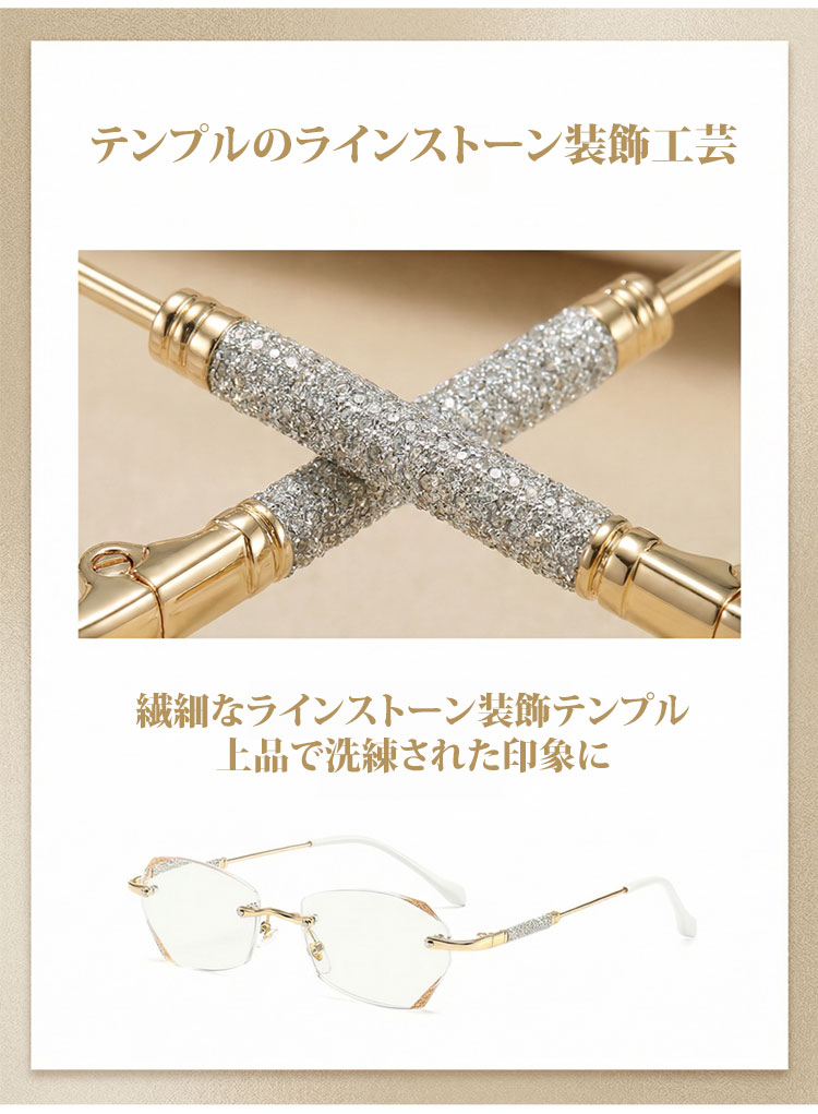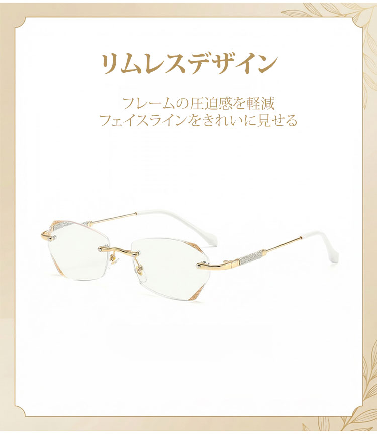 【素肌に寄り添う、さりげない輝き】Eterlens | 「輝きを放つテンプル」リムレス | 超軽量チタン 縁なし | リーディングミラー 度付き