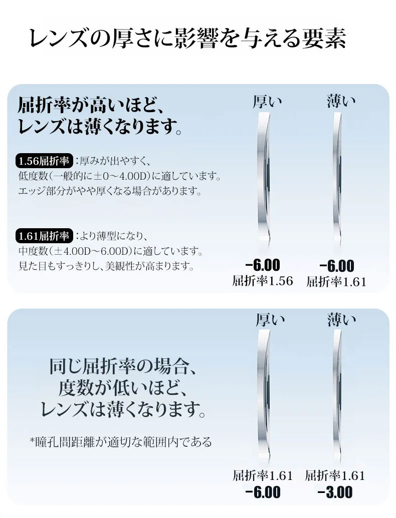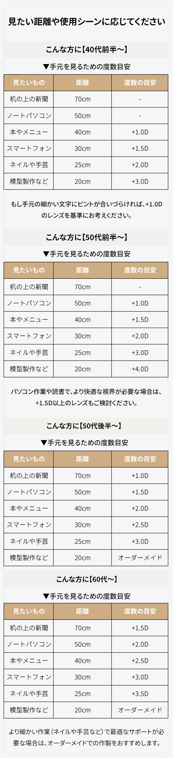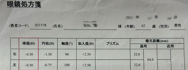 ※近視は「マイナス(−)」、遠視や老眼は「プラス(+)」が数字の前につきます。