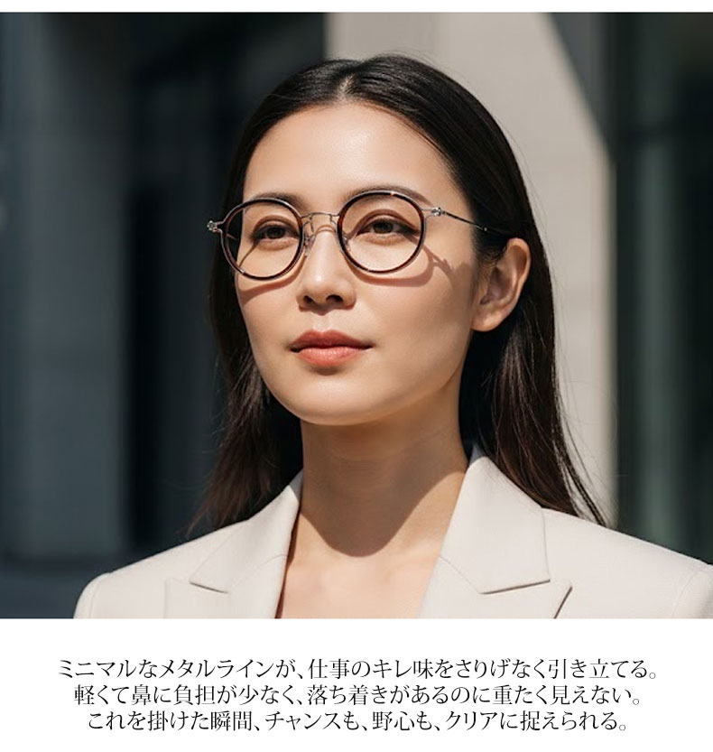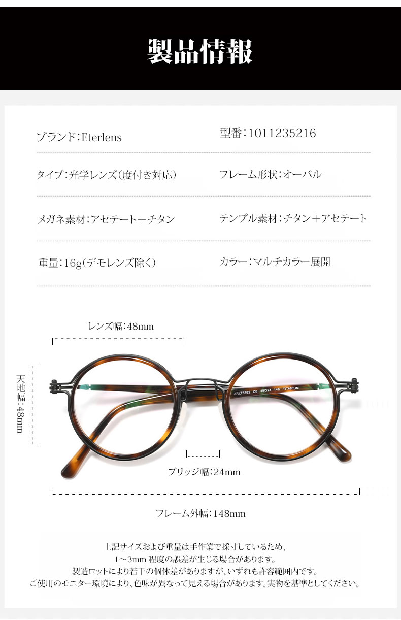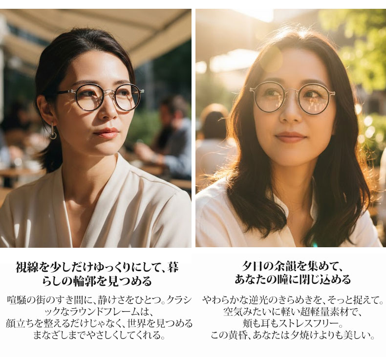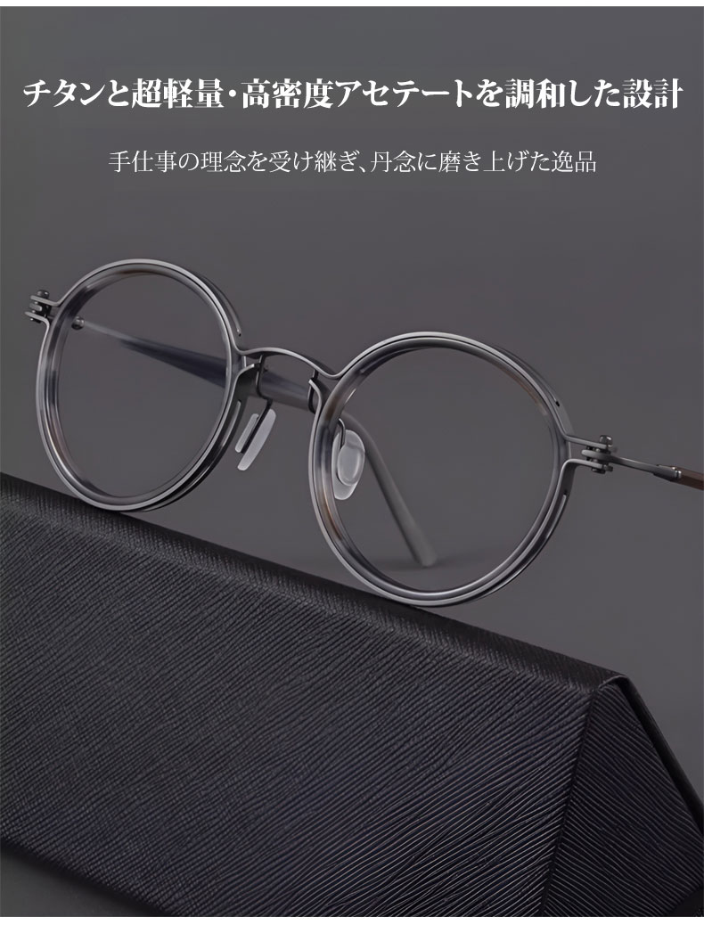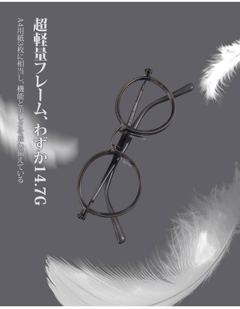 【鯖江風・14.7g超軽量】Eterlens 老眼鏡 おしゃれ 丸メガネ Retro-Classic 14 | 純チタン製 遠近両用 調光対応 | 度付き対応可能・匠の仕上がり