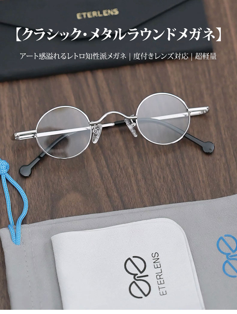 【クラシック・メタルラウンドメガネ】 ETERLENS | アート感溢れるレトロ知性派メガネ | 度付きレンズ対応 |超軽量 日本人の顔に馴染むデザイン