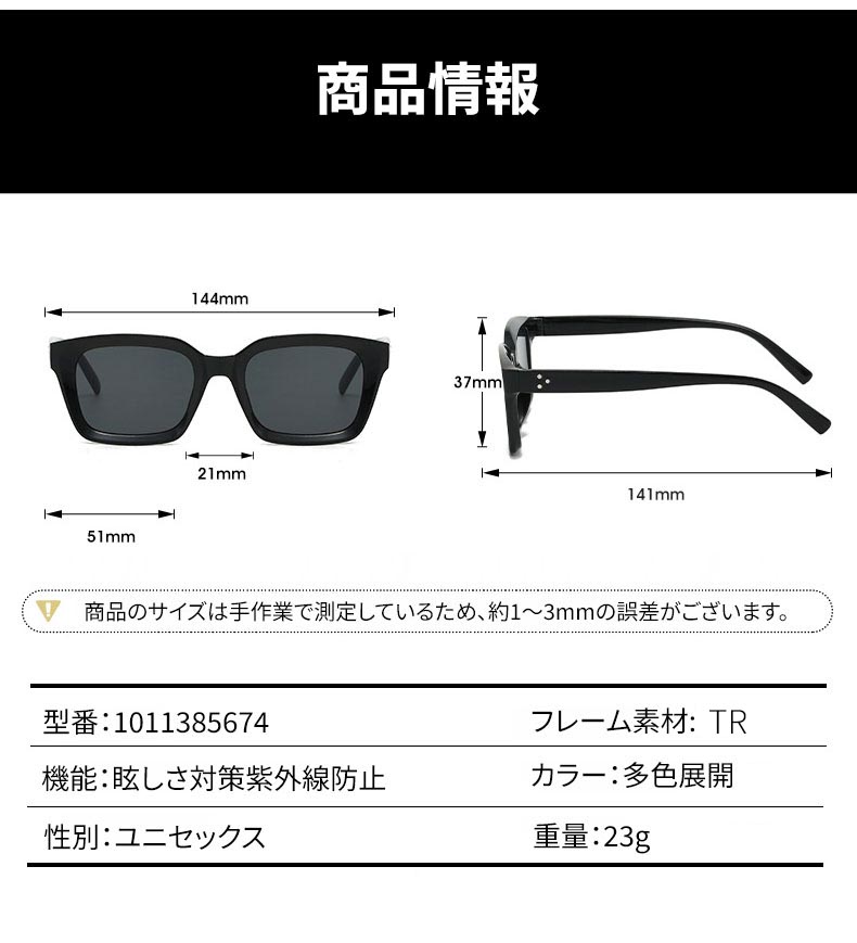 【超軽量TR・太縁】Eterlens | 3点鋲スクエア・サングラス【Rivet-Icon】| 高靭性素材で痛くなりにくい| 紫外線カット | 運転・アウトドア | 小顔効果
