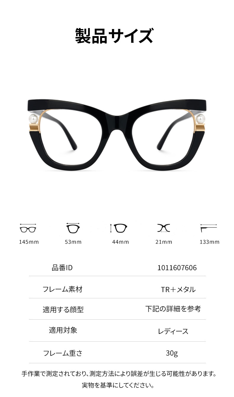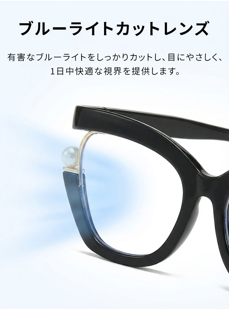 【パール装飾・バタフライ】Eterlens メガネ 度付き おしゃれ 個性的 | キャットアイ・フォックス型 | 小顔効果・大きめフレーム | 華やか・パーティー・レディース