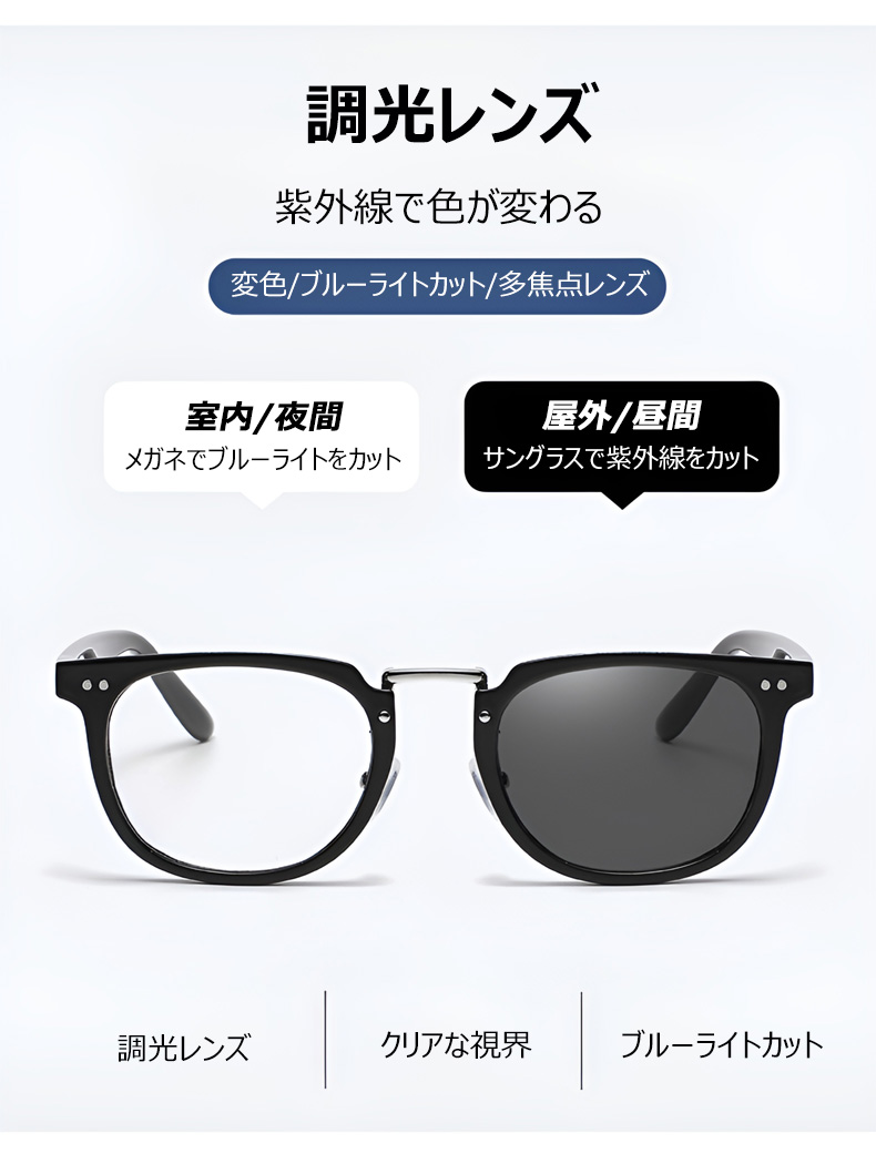 【1本3役・遠近両用】Eterlens 老眼鏡 おしゃれ 調光レンズ | 累進多焦点サングラス | 室内外兼用・ベストセラー